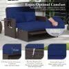 ● Space-Saving Design: When not in use, the ottoman can be pushed under the love seat to save space, leaving more room for other activities. Designed with elegant rattan surface, this patio sofa set will be a decorative addition to various occasions, such as backyard, poolside and deck.