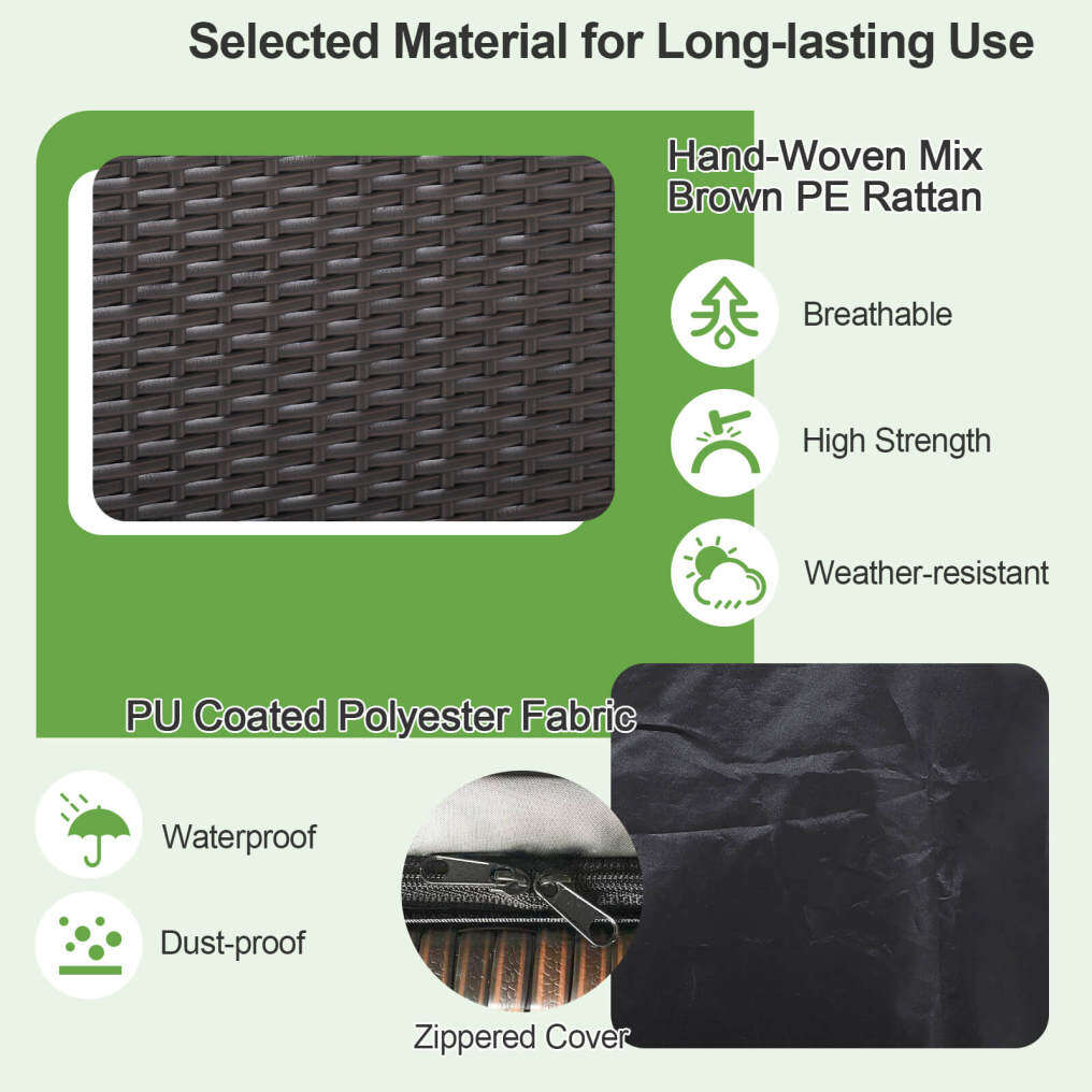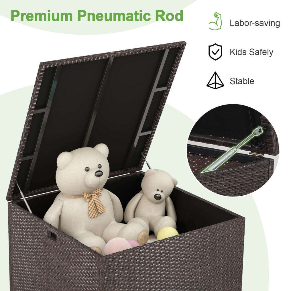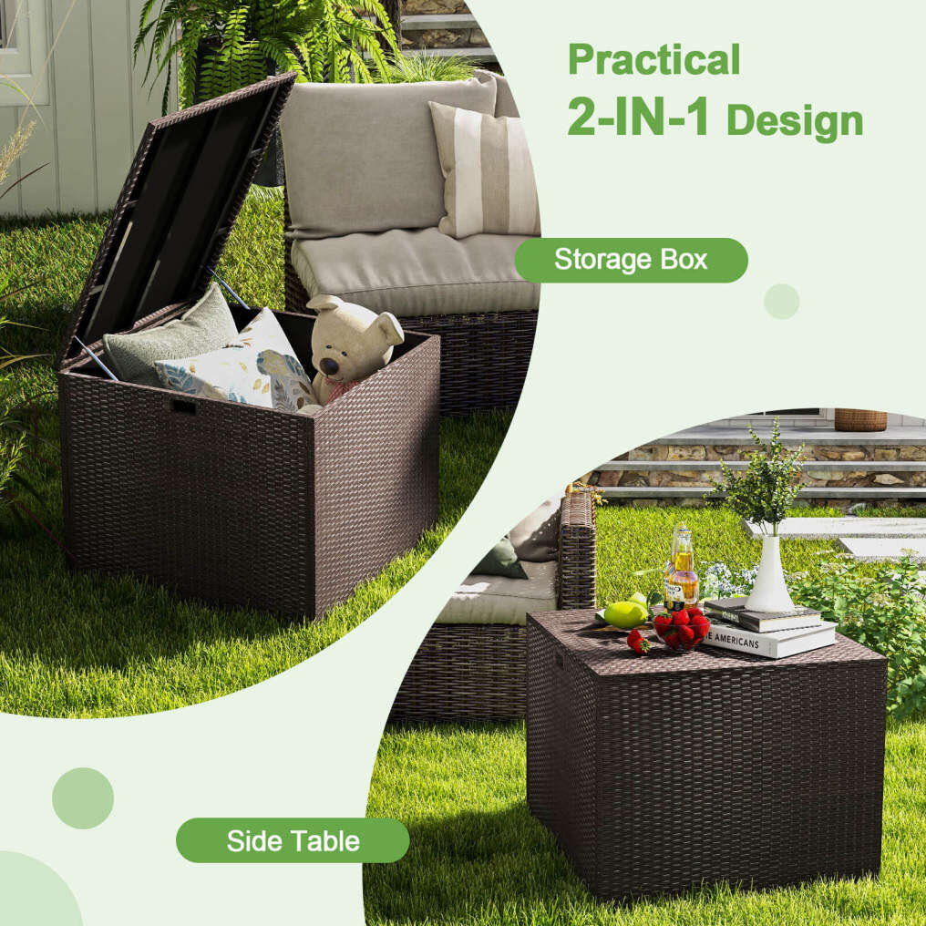 ● Elegant yet Durable Rattan: Featuring hand-woven mix brown PE rattan, this deck box looks appealing and elegant. Also, covered with rattan surface, the box can withstand longer outdoor using time. Note: Please avoid rain exposure for prolonged service life.