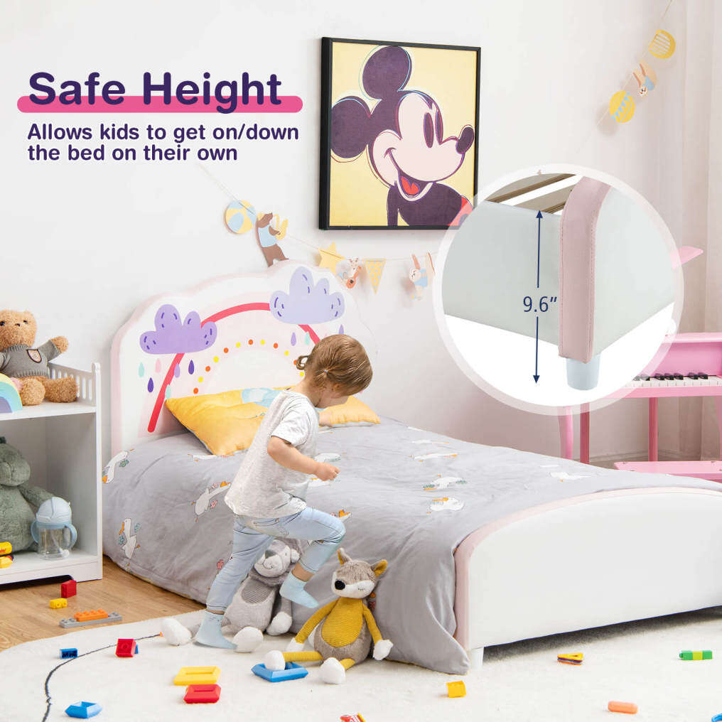 ● Wide Application: Featuring cute patterns, this kids bed frame will attract your children's attention. Moreover, you can use this bed in your bedroom to make transition time easy. When they are a little older, you can place the bed in their room to foster independence.