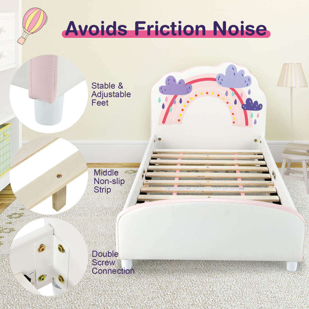 ● Fix the Mattress (Not Included) in Place: Designed with a headboard, side rails and footboard, this kids bed frame effectively prevents the mattress (not included) from accidentally falling. Besides, the soft sponge padded headboard and kid-friendly bed height allow your children to get on the bed easily and lean back comfortably to read a book.
