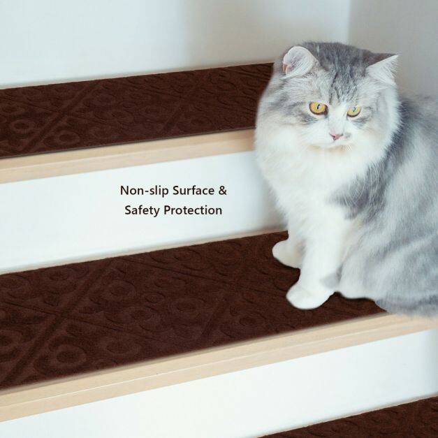 This stairway carpets are made of premium polyester fabric, which effectively protect your feet.