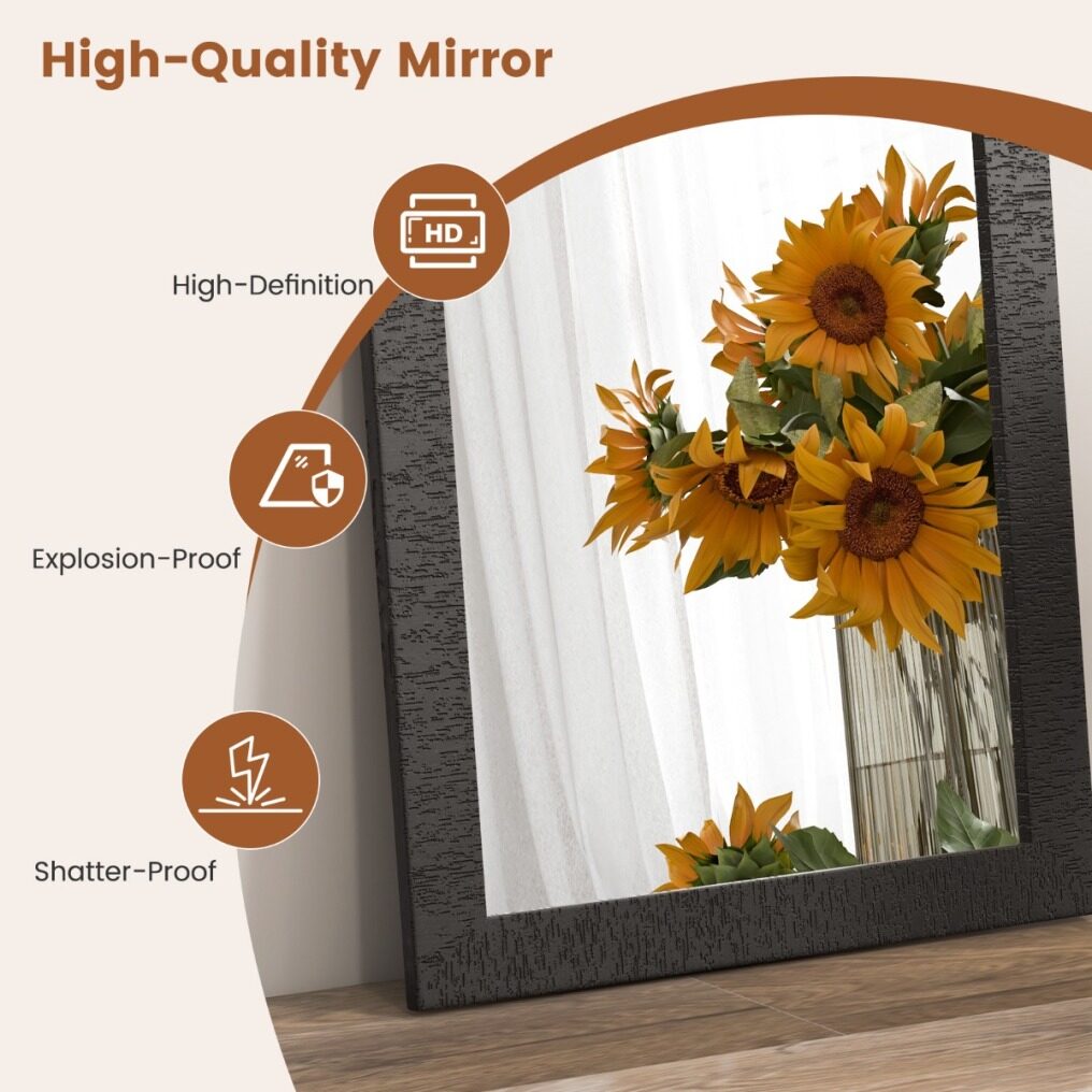 Natural and Solid Wood Frame: This wall mounted decorative mirror is framed in thick and solid wood, which is stable, durable and not easy to crack. Besides, the surface of the heavy-duty metal bracket features electrophoresis treatment to enhance rust resistance for a longer service life.
