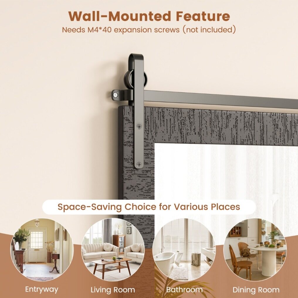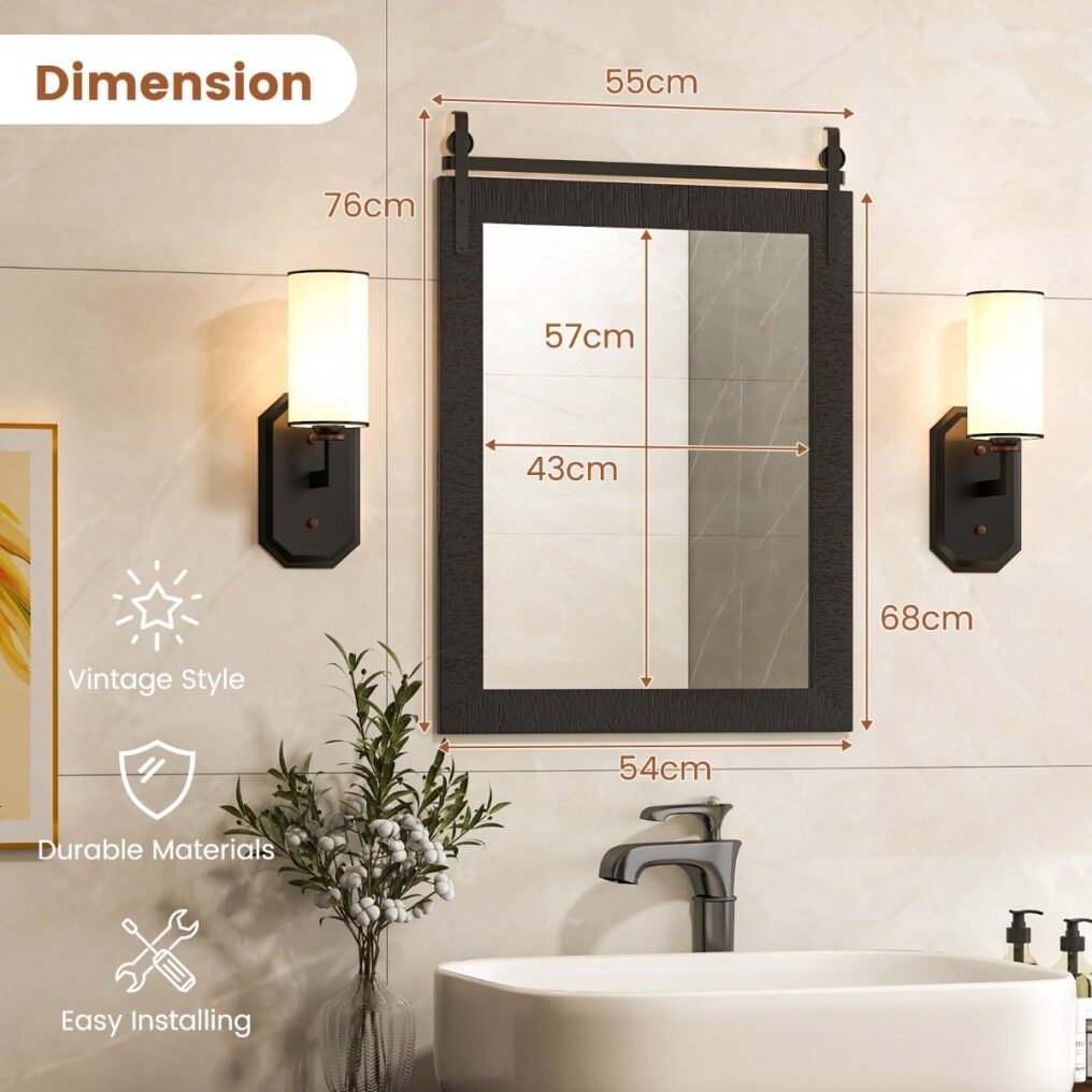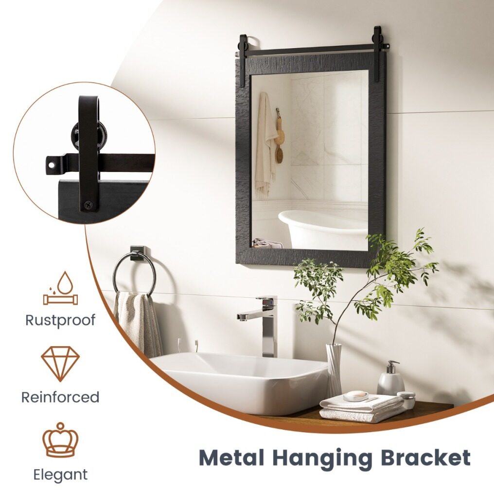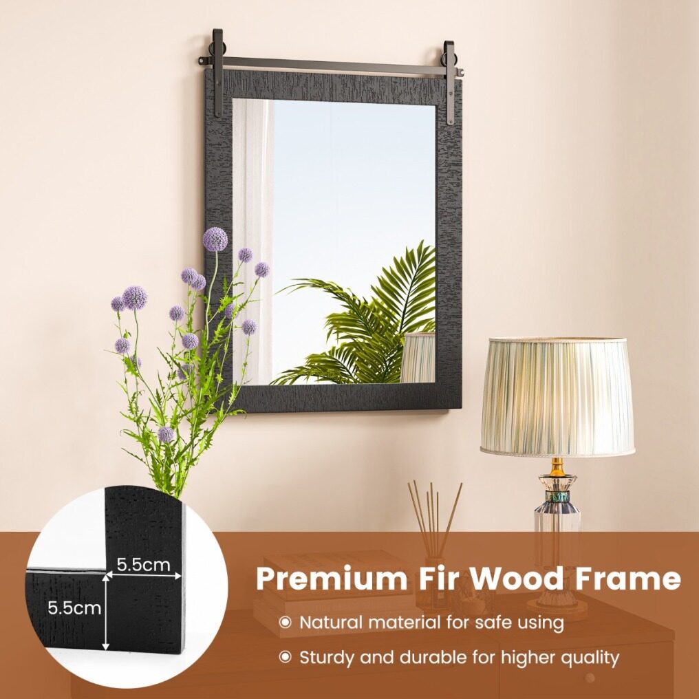 Farmhouse and Rustic Style: Featuring a barn door inspired design and rustic wood grain surface, this wood framed wall mirror is a great combination of farmhouse style and vintage charm. In addition, the black metal bracket on the top adds specialty and a sense of chic to the mirror.
