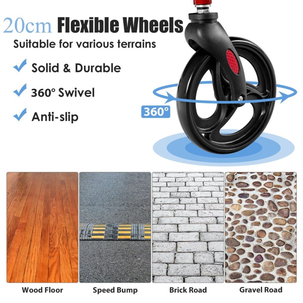 Aluminum alloy makes the walker lightweight yet sturdy 20 cm wheels are suitable for various ground surfaces