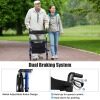 Adjustable Handle with Dual Braking System: With 6-level height adjustment, the rollator walker fits people between 150 cm and 185 cm and enables people to walk upright so as to reduce back and leg pressure. What’s more, the dual braking system enhances safety no matter when you need to control speed or parking.