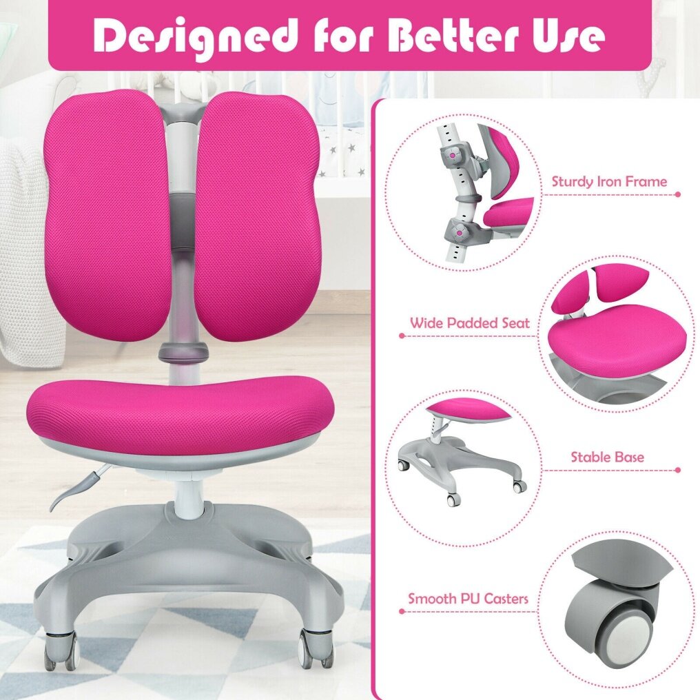 This kids study chair is characterized by humanized and ergonomic design. Seat height and depth are adjustable to accommodate to people of different heights, as well as backrest height. Foam-padded cushion can relieve the pressure of long-time sitting. Besides, it is constructed with solid iron pipe and durable PP material for long-time use, which supports users up to 330lbs. Owing to its self locking casters, it is great for kids to focus on their activities while sitting on the chair, and is also safer and more steady. As a good partner to accompany children's growth, this kids study chair can be widely used in kids room, living room, school and more.