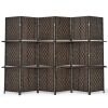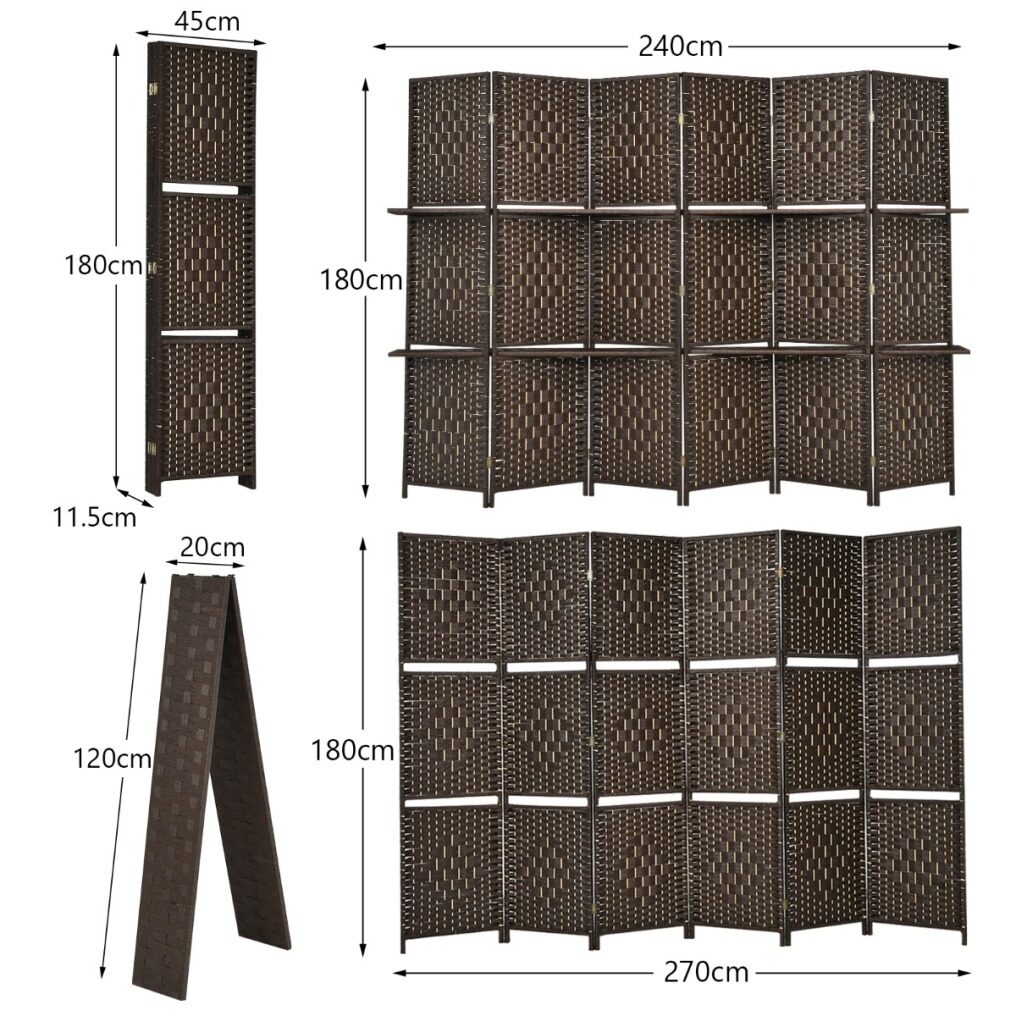 6 Panel Freestanding Folding Room Divider with Removable Shelves-Brown