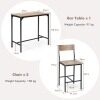 Our stylish bar table set starts delightful family time and friends gathering, allowing to enjoy entertainment altogether. Moreover, the bistro table set combines natural beauty of the wood grain and simple lines to match seamlessly with any room styles. In order to save more space, the stools can be tucked under the table when not in use. Specially-designed ergonomic backrest provides you with much more comfort when sitting on the chair. The solid steel frame and durable MDF tabletop through delicate craftsmanship ensure long service time. Owning this well-designed bar table set makes it easier to enjoy delicious food and have a good time with your family and friends.