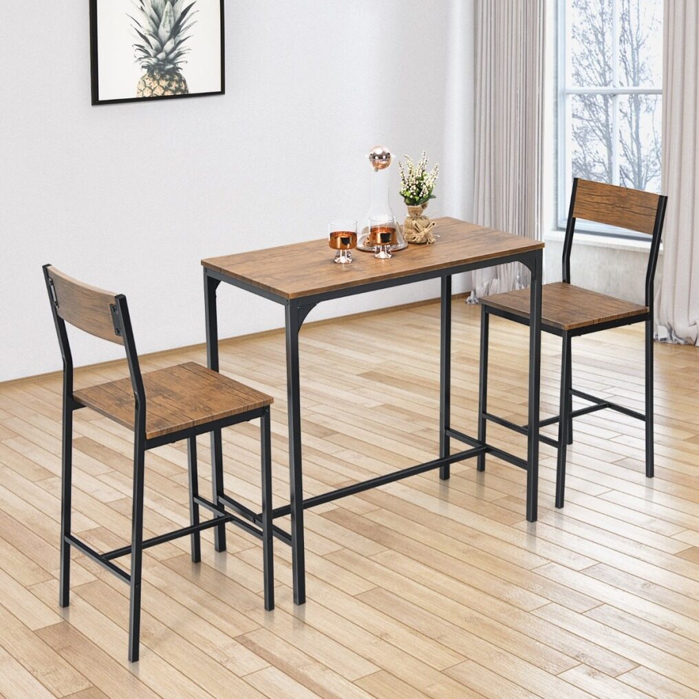 Compact Size to Save Space: The bar table set is smartly made to be placed at any small spaces like the corner of dining room, and perfectly fits any large space as well. Besides, in order to free up more space, the stools can be tucked under the bar table when not in use.