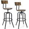 The swivel height-adjustable system allows you to change the seat height from 69 cm to 76 cm, and chair height from 98.5 cm to 105.5 cm, perfectly matching with your counter or bar height table. And the detachable backrest enables the bar stools to change outlooks, customizing your own perfect seating furniture. It also ensures an ergonomic design with curved backrest and footrest to better relax your body. The industrial wood grain brings back the vintage style and farmhouse feel. These bar stools are stable and reliable with cross structure at the back of the seat base. And metal legs with non-slip foot pads also protect your floors.