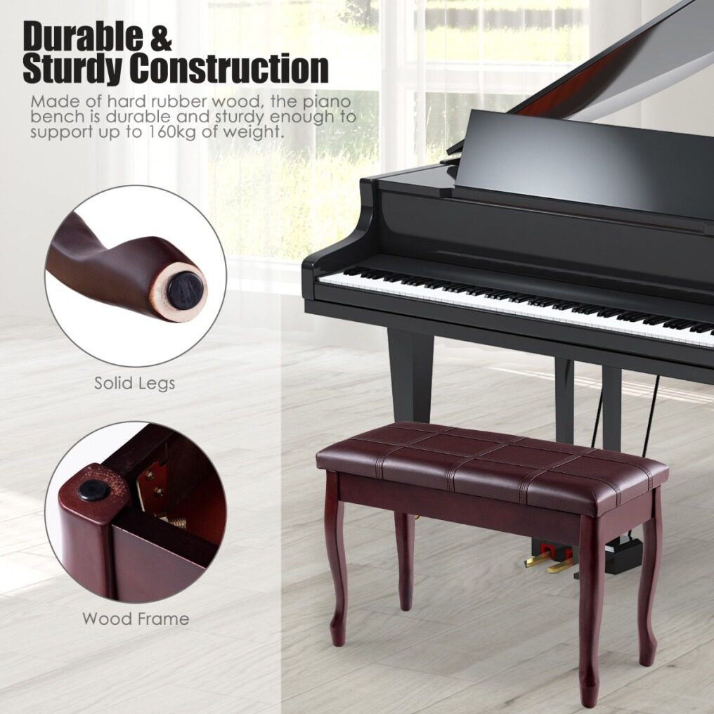 Sturdy Construction: Our piano bench is made of high quality solid wood and PU leather. Solid wooden legs offer strong support, making it sturdy and durable enough to stand steadily. With a anti-skid foot pad under each leg to protect floor from being scratched.