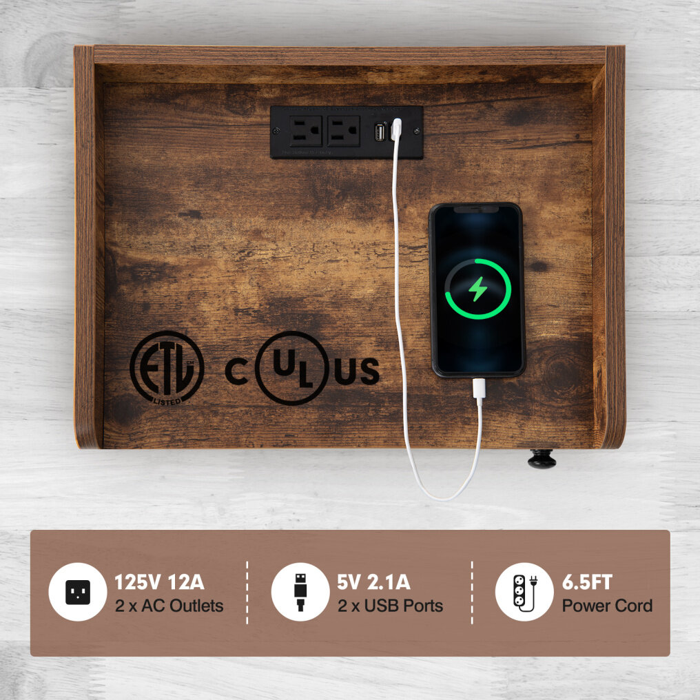 ● Convenient Charging Station: There is a hidden charging station in the compartment. It is equipped with 2 AC power outlets and 2 USB ports which allow you to charge 4 electronic devices simultaneously. Besides, the unique cable management grove is useful to keep messy power cords in order.