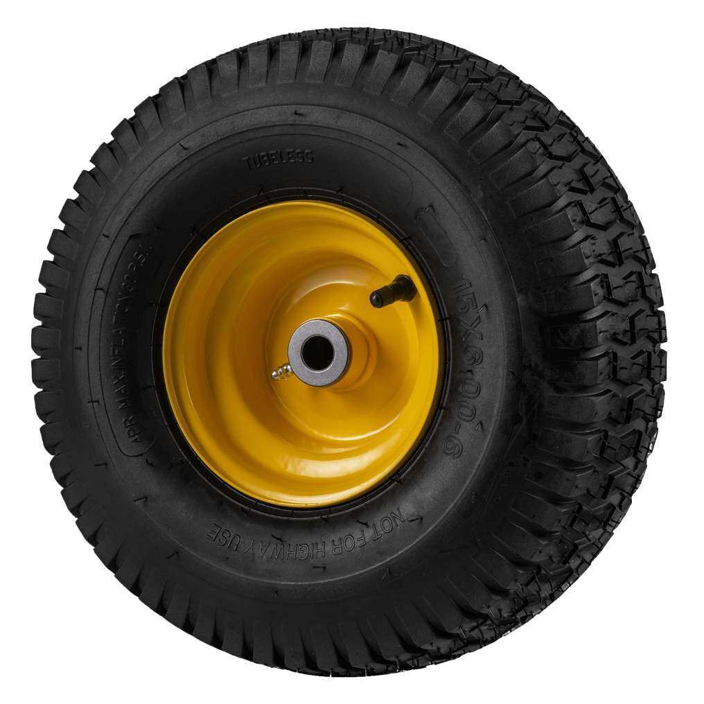 ● Reliable Features: Equipped with sintered bearings, these tires with wheels require less upkeep, enhancing convenience and longevity. The grease fitting allows extra bearing lubrication, and the thickened rim offers sturdy support to withstand tough mowing conditions.