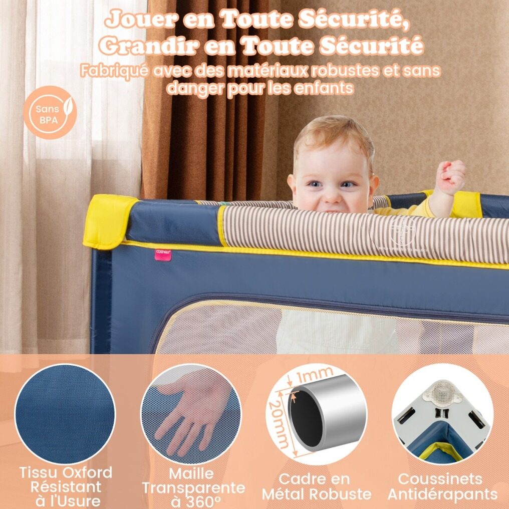 Safe and Robust Materials: The sturdy metal frame (tube thickness 1 mm) makes it a long-lasting addition to your child’s playtime essentials. Plus, the anti-wear Oxford fabric is also BPA-free, and 360° see-through mesh cloth allows parents to interact with the little ones at anytime, giving the baby enough sense of security.