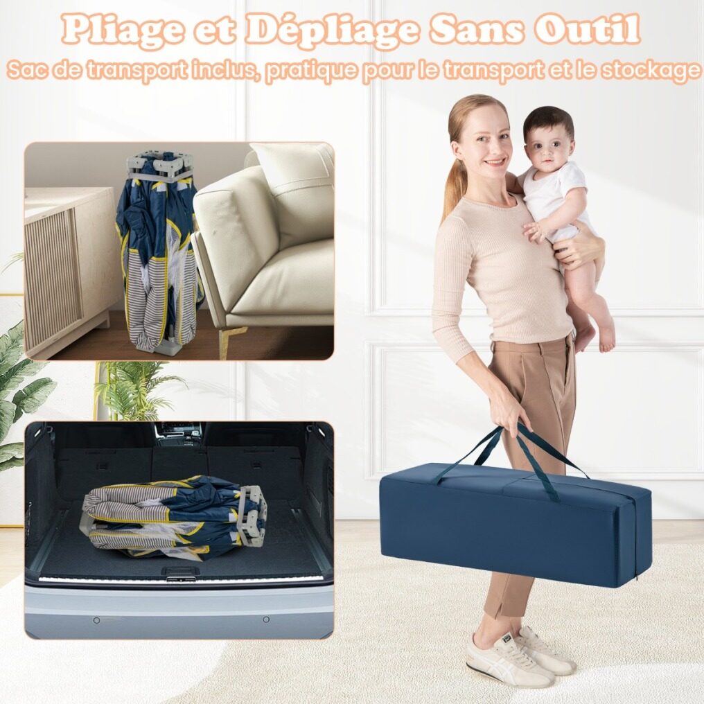 Foldable and Portable Design: No assembly needed when you receive this play pen. It sets up and folds down simply. It comes with an included carry bag, convenient for transport and storage. Whether at home, or at a picnic, this versatile play pen is your go-to solution for safe and contained play.