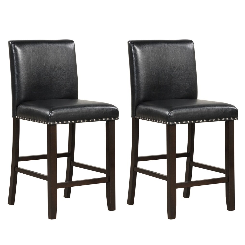 ● Great Comfort: Upholstered with high-density sponge and skin-friendly PVC leather fabric, the padded seat and thick backrest offer your guest great softness helping distribute pressure evenly for fatigue relief. Meanwhile, each bar stool is designed with a 25.5" high seat and 7" high footrest, allowing for comfortable sittings.