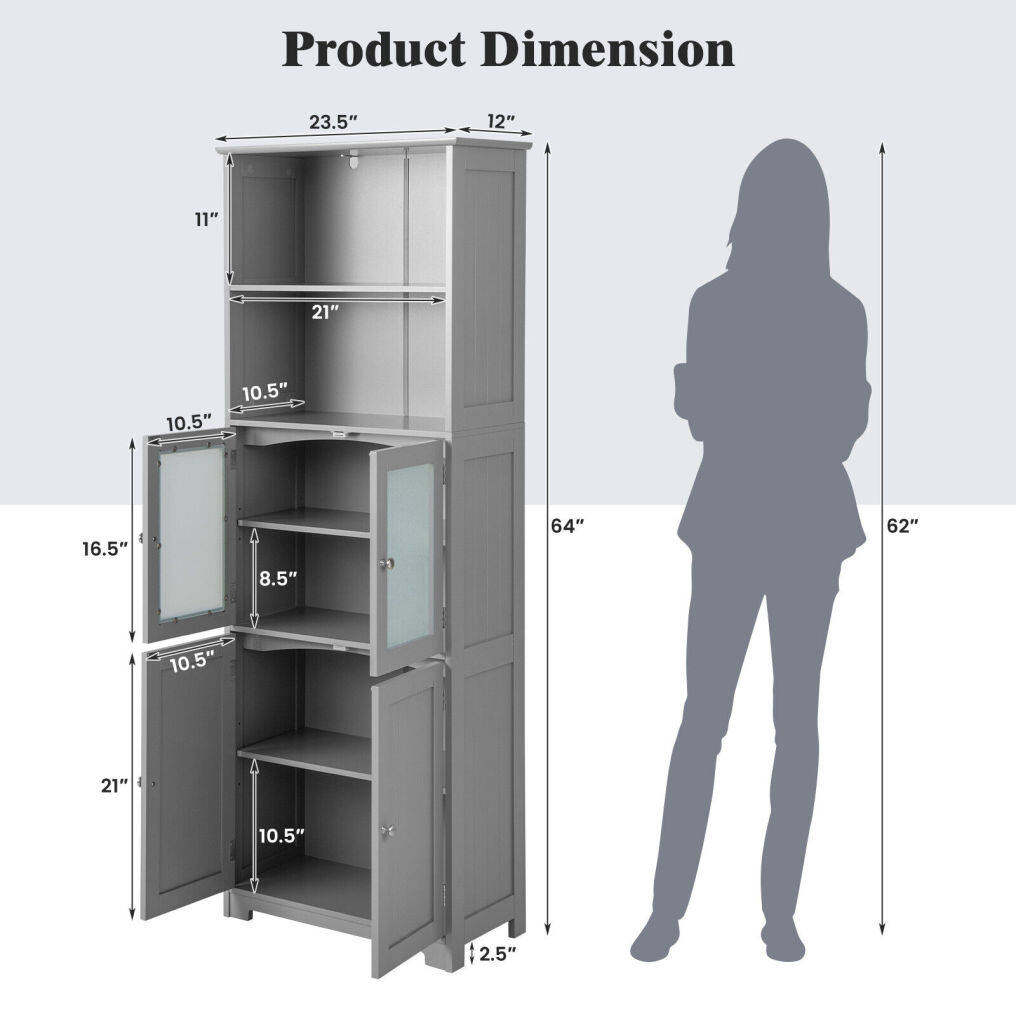 ● Wide Range of Application: This 64" tall floor cabinet can keep your home neat and tidy, which is suitable for any room that needs additional storage space. In addition to being used as a bathroom storage cabinet, it can also work as a pantry cabinet/cupboard in the kitchen or dining room or a side cabinet in the living room.