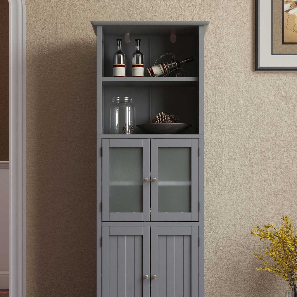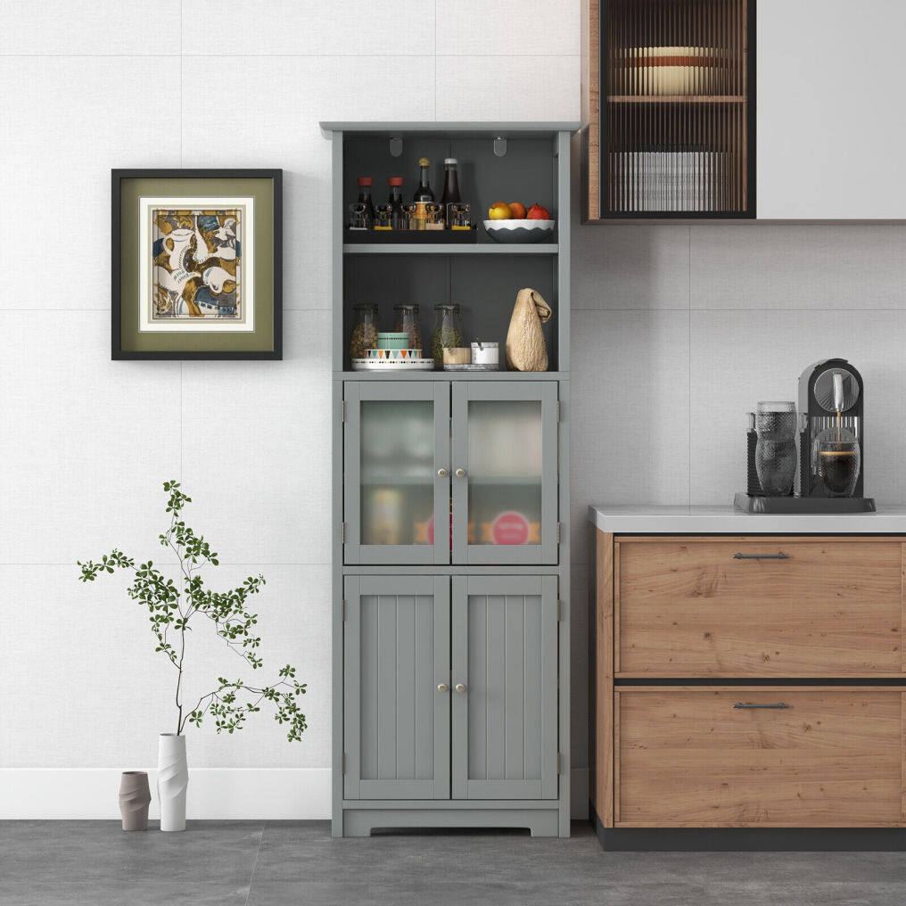 ● Elegant Look and Convenient Use: The pure white/gray finish, sleek lines and stripe design on the cabinet surface add a touch of beauty and modern charm to this tall floor cabinet. Moreover, the handy round handles and functional magnetic catches help you to open and close the doors with ease.