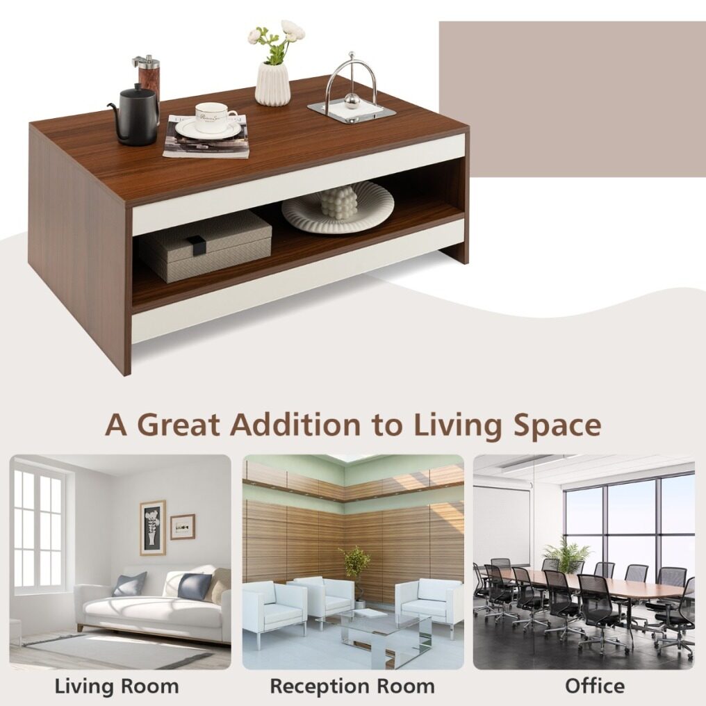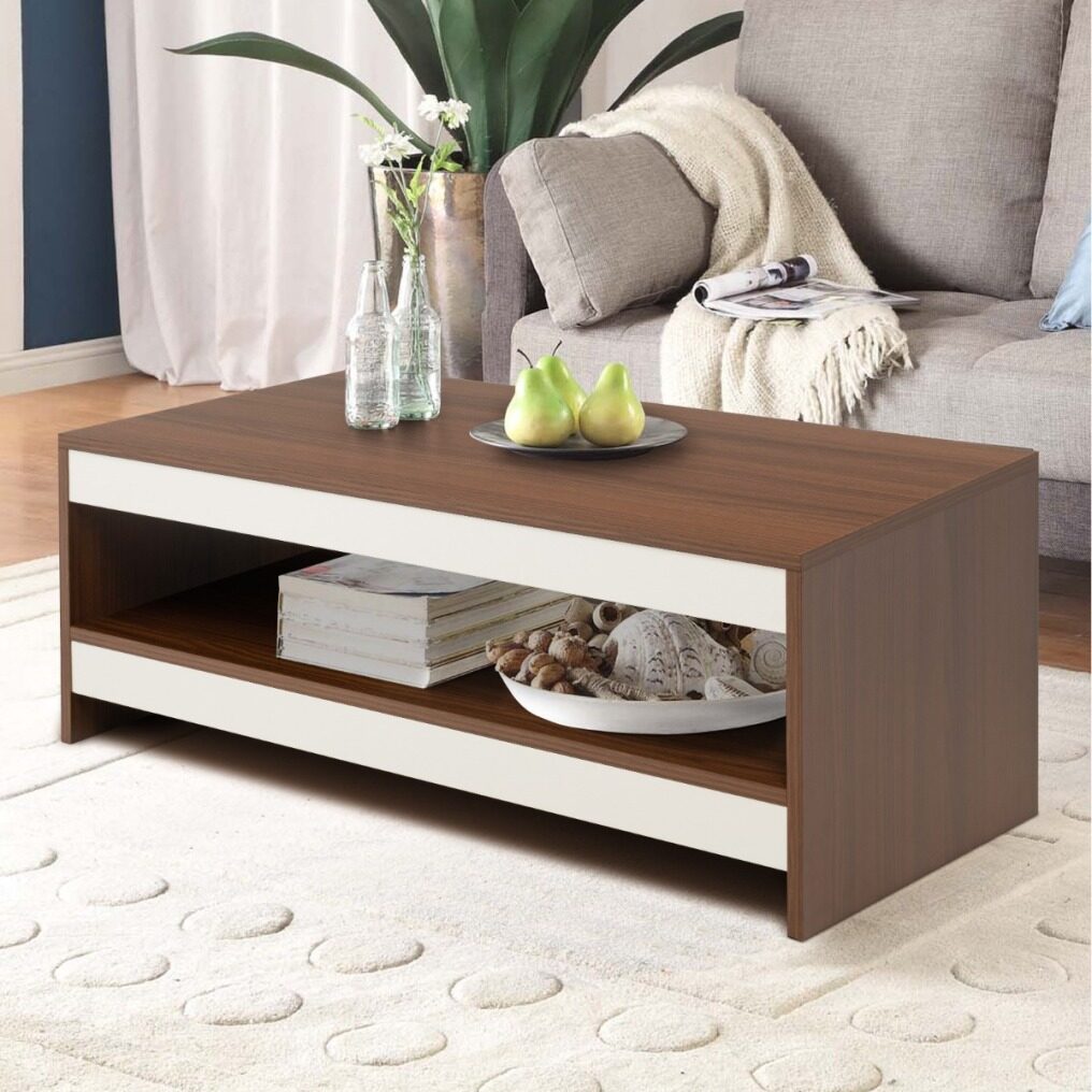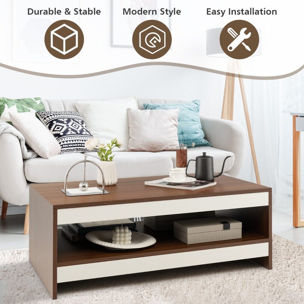 Modern Appearance: The surface of the cocktail table is finished with exquisite wood grain, giving the table a rustic natural charm. The white and walnut colour-blocking design greatly improves the chic sense, making the coffee table a modern and stylish addition to your living space.