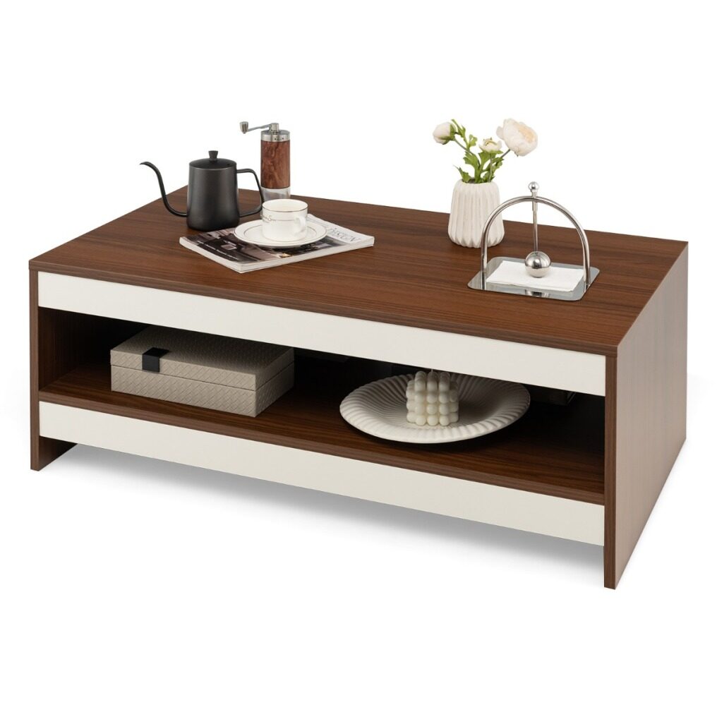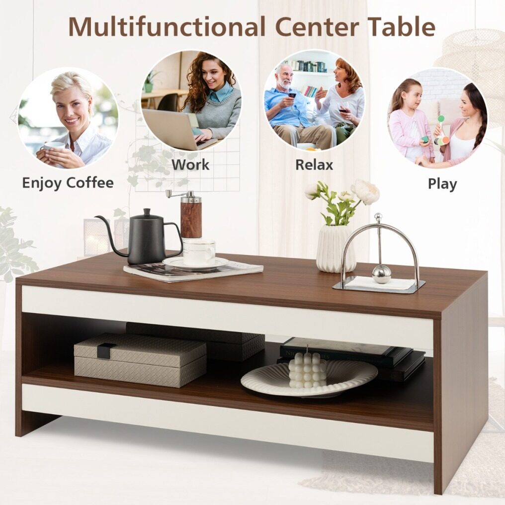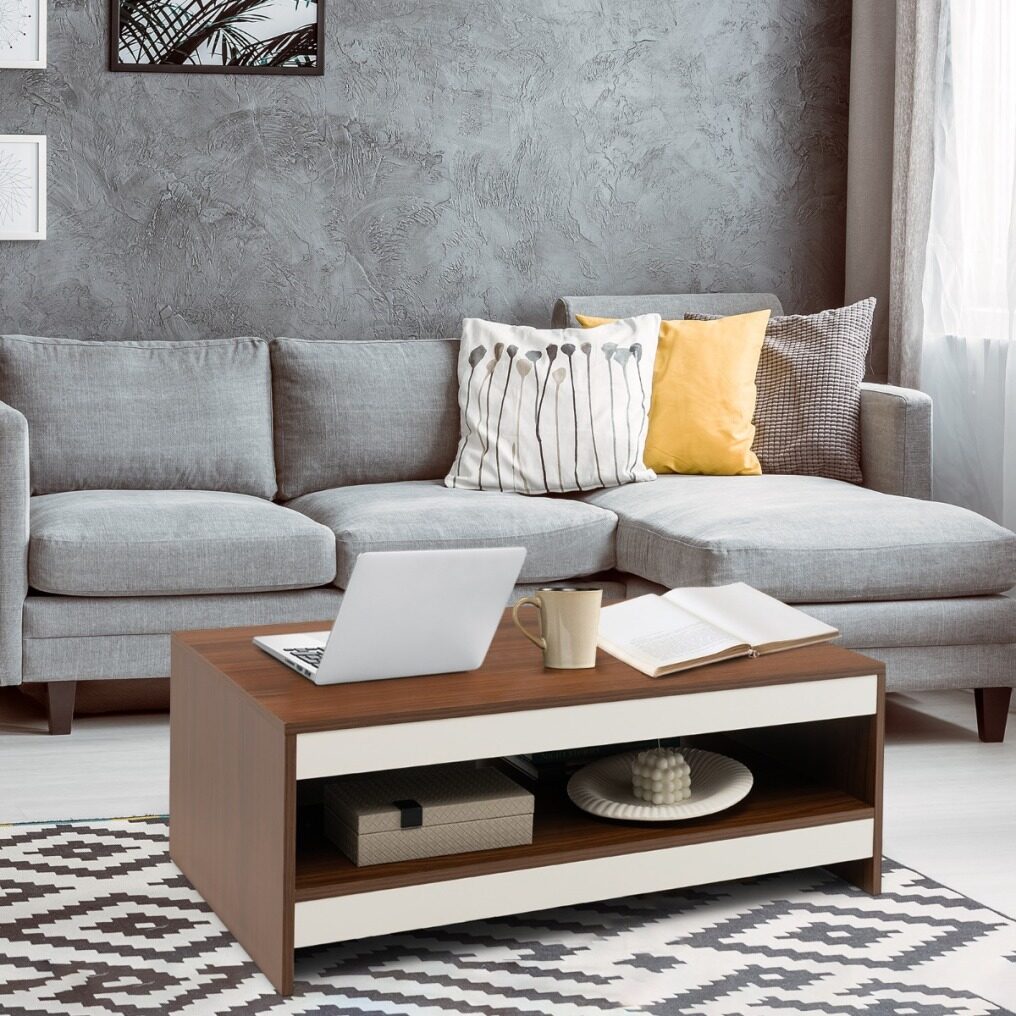 Modern Appearance: The surface of the cocktail table is finished with exquisite wood grain, giving the table a rustic natural charm. The white and walnut colour-blocking design greatly improves the chic sense, making the coffee table a modern and stylish addition to your living space.