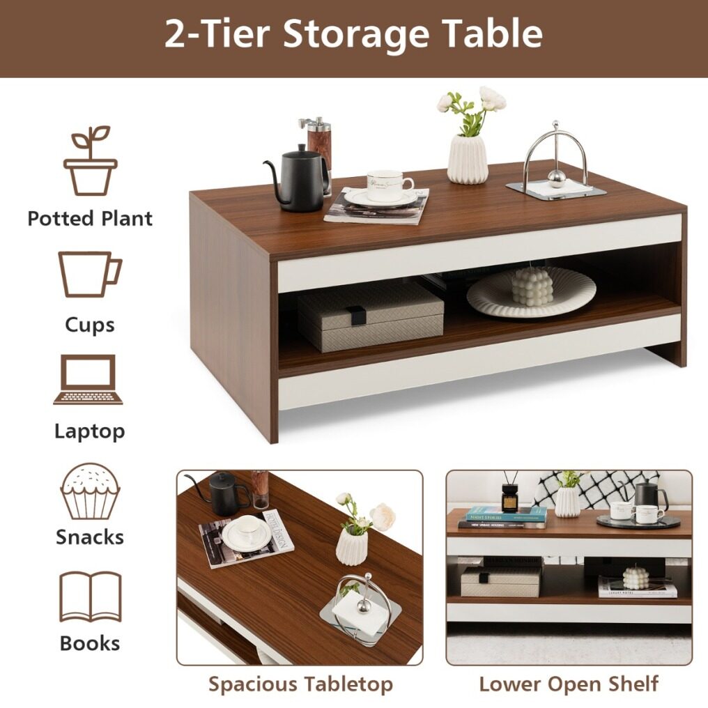 Ample Storage & Display Space: This 2-tier coffee table features a spacious tabletop and an ultra-wide open shelf, which can fully satisfy your storage needs to keep your room neat. Besides, the open design is ideal for displaying your favourite collections, photo frames, vases, tea set and so on.