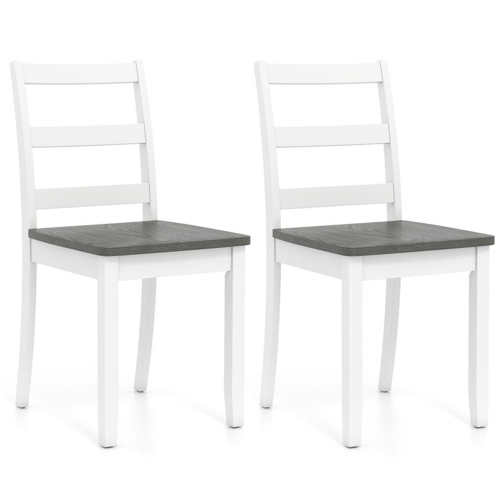 Set of 2 Wood Dining Chairs with Solid Rubber Wood Legs-Gray