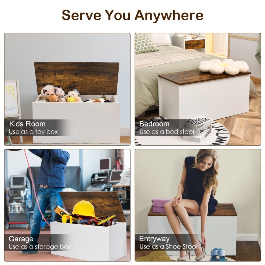 Versatile Chest for Any Room: With spacious internal capacity and wide sit-on top, this versatile unit can be used as a toy chest, a bed stool, as we as a shoe stool. Its retro design and sleek appearance perfectly match any room decor so that you can use it in your bedroom, living room, kids room and entryway.