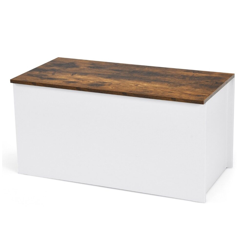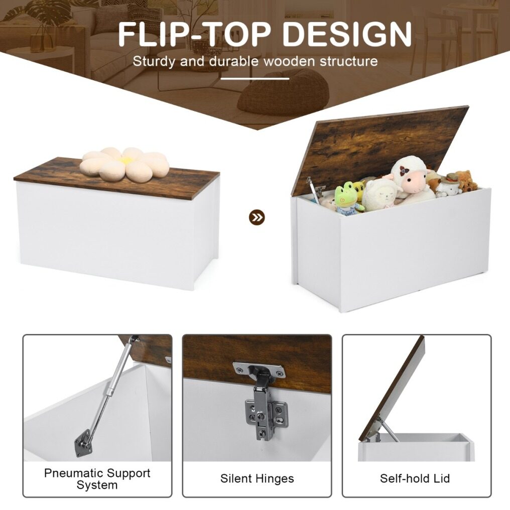 Safe Design for Family Use: With a flip-up top board, this wooden storage chest is easy to open and close. Besides, the top can stay open to free your hands and make it easier to search items inside. The self-hold lid is supported by pneumatic rod and is fitted with anti-collision pads, so you don't have to worry about clamping on fingers.