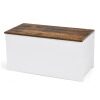 Kids will love having a special place to store all their toys! This toy storage chest is a classic yet versatile design that will add timeless charm to your kid’ s space. With ample storage space, your kids’ toys, clothes or books can be stored away for convenience and aesthetics. Closing the lid, the normal storage box can be used as a bench seat. Made of superior particle board and high-quality hinges, this rugged storage box lasts for years. Also designed with your child's safety in mind, the toy organizer features smooth edges and a slow closing lid, protecting children from being injured. Rustic brown and white color and simple style highlight your current decor, making the simple storage chest fit for various places.