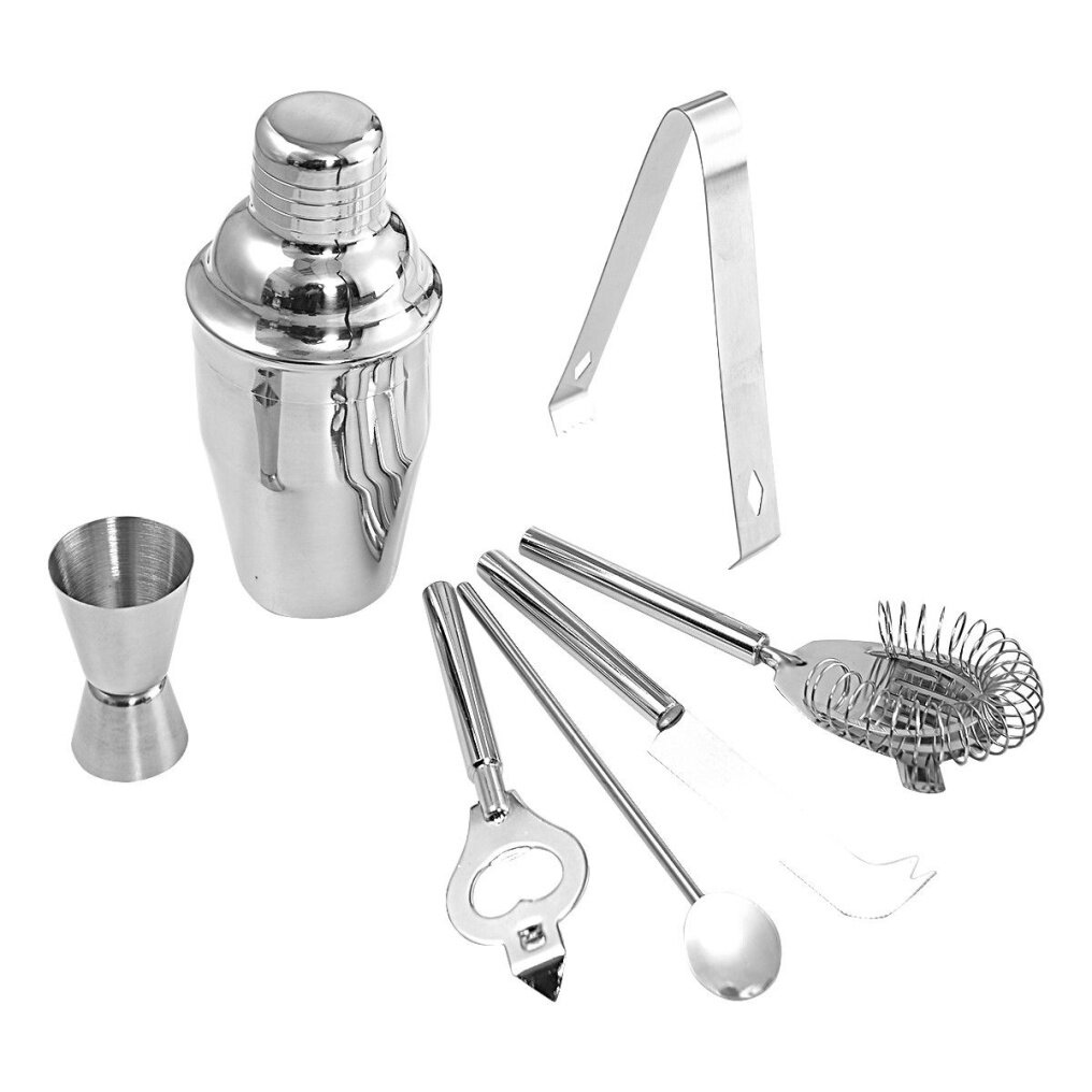 This stainless steel bar set including 8 pieces is great for home bars and parties.