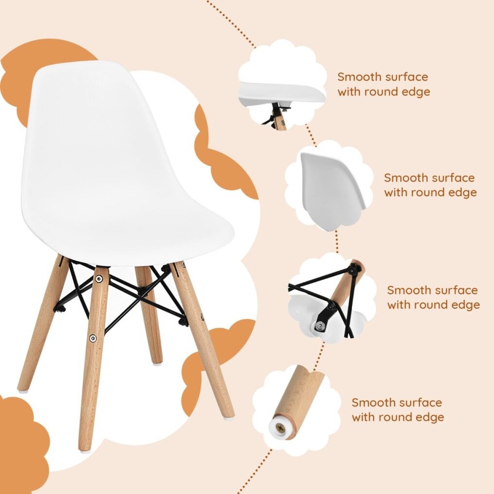 Reliable Material & Round Edge: Made of odorless PP and natural beech legs with a wire steel base, this mini side chair is stable and reliable, most importantly safe for kids to use. And it has been polished with a smooth and round surface to step up safety.