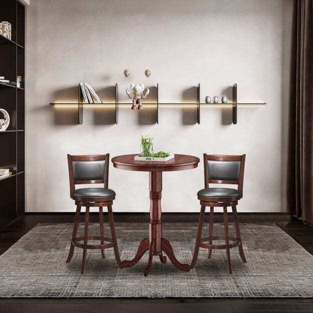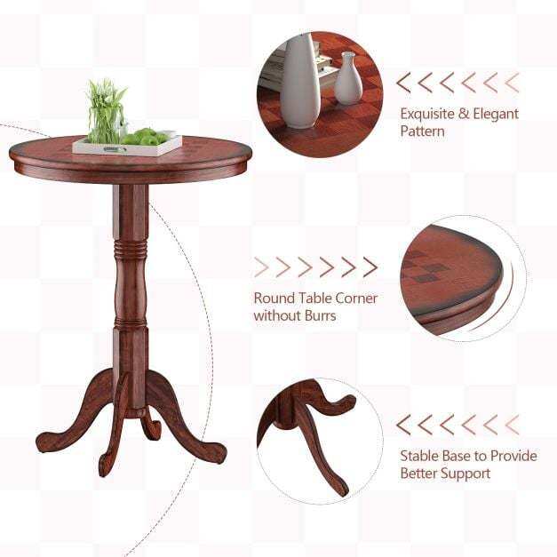 ● Elegant and Stylish Appearance: Combining elegant lines with concise style, the pub table fits in all types of decoration perfectly. Simple but delicate carve on the pedestal makes the table more sophisticated. With gorgeous color of brown, the pedestal table will be a cozy and warm furniture in your room.