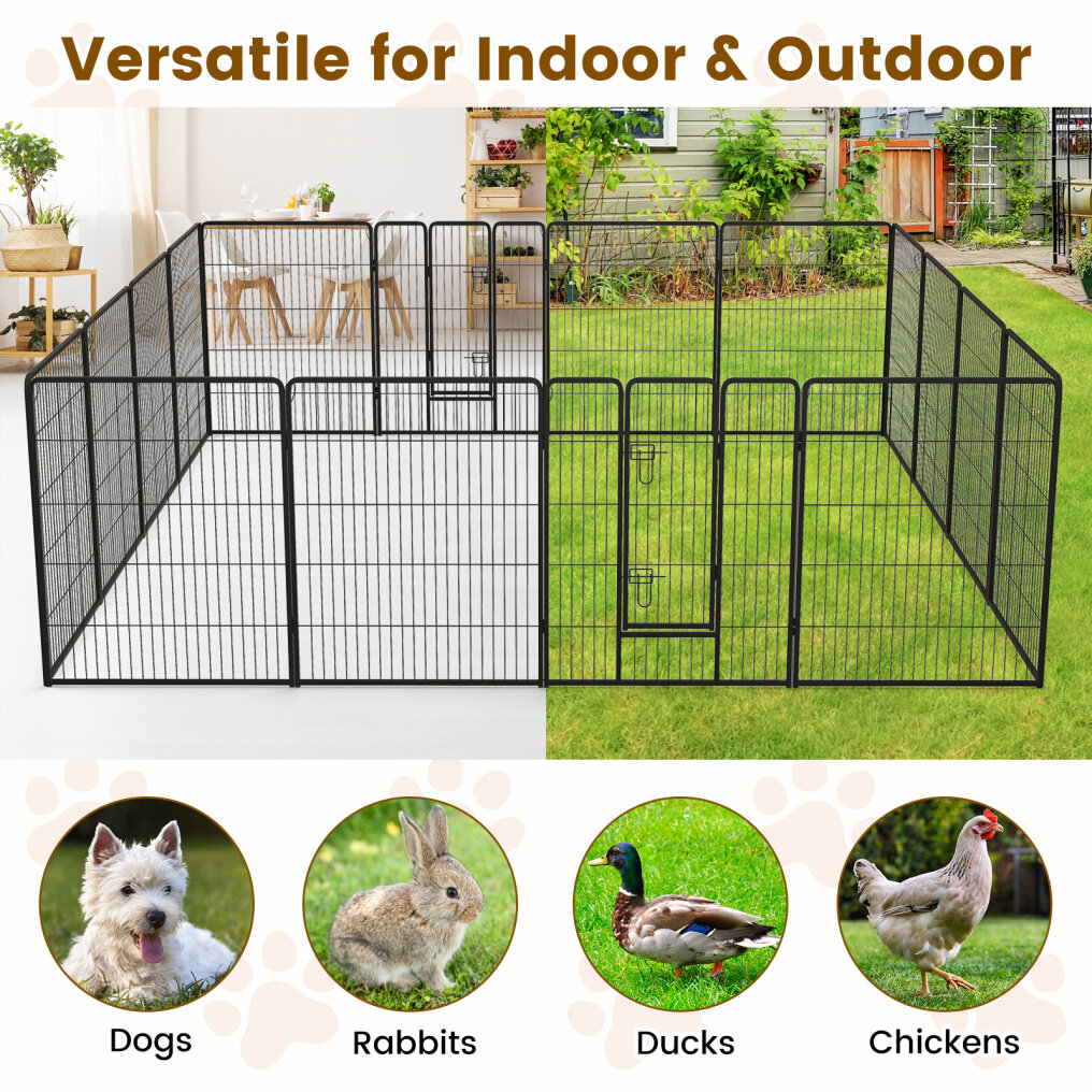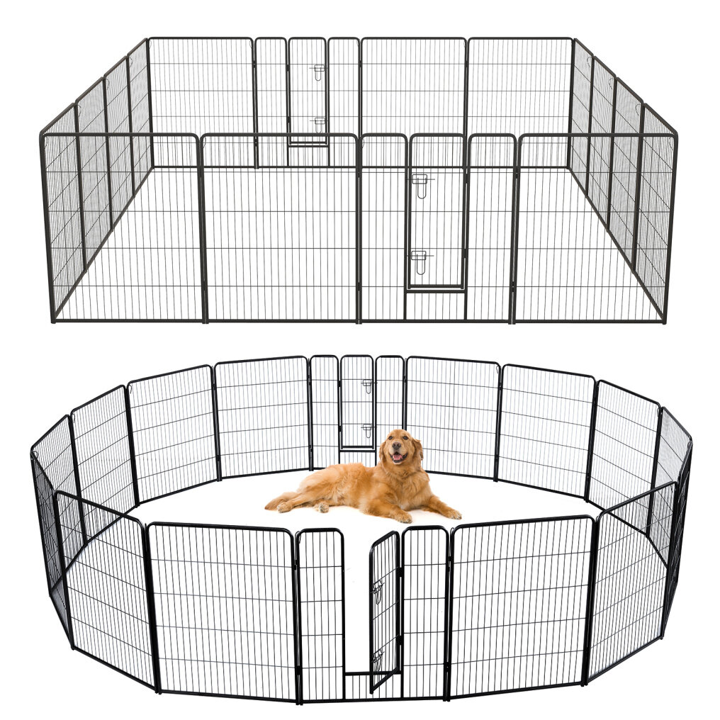 3 Sizes for Your Choice: This 16 panels dog playpen provides your pets with a secure and versatile space. We provide 3 options for you to choose: 24”/60 cm playpen for puppies and small-sized dogs, 32”/80 cm for small and medium-sized dogs, and the 40”/100 cm for medium and large-sized dogs.