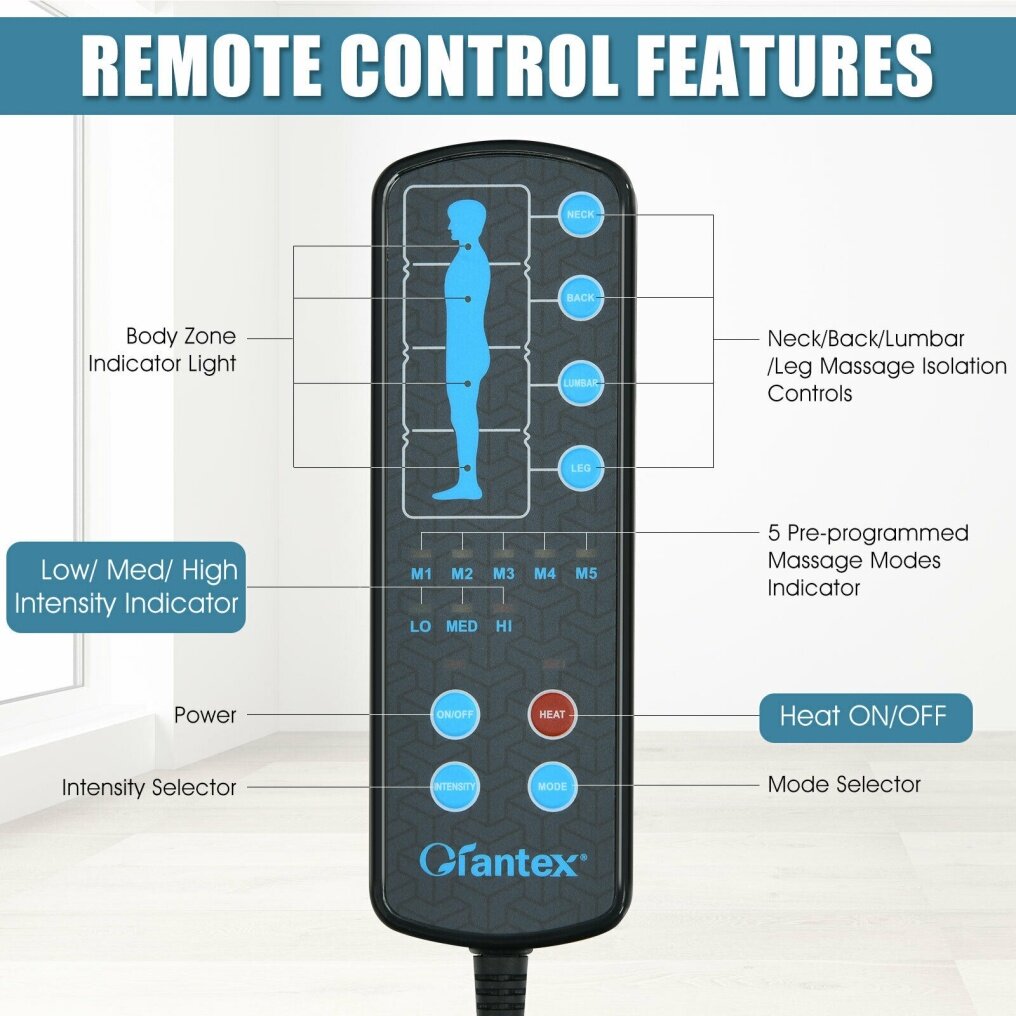 ● Full Body Massage Mat: The vibrating mat for full body uses 10 powerful vibration motors that give you a therapeutic massage that helps release tension, stress, and fatigue after a long work day. What's more, you can choose from among 5 massage modes and enjoy full control over the low/med/high intensity levels as you hit all the right spots.