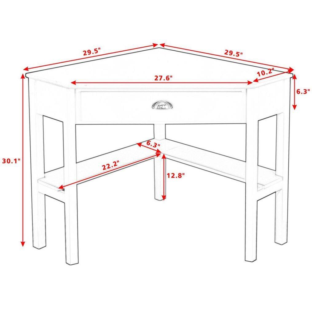 The corner table is considerately designed with a large drawer and two wide shelves to offer you plenty of room for computer, laptop, table lamp, book and other items. Unique corner table improves the space utilization while also making your room more tidy and orderly. Simple lines and generous color make the table be integrated into multiple different decorative styles perfectly. Solid pine wood structure ensures the firmness of the table so that it will serve you many years.