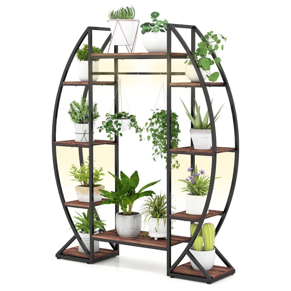 ● Advanced Lighting System: This 10-tier plant stand features 4-head grow lights, with a line length of 114"/290 cm, designed to boost indoor plant growth without the need to constantly move plants outside. Plus, the lights offer 10 brightness levels and 3 auto on/off timer settings (3/9/12 h), with options to activate all 4, just 2 above, or 2 below lights.