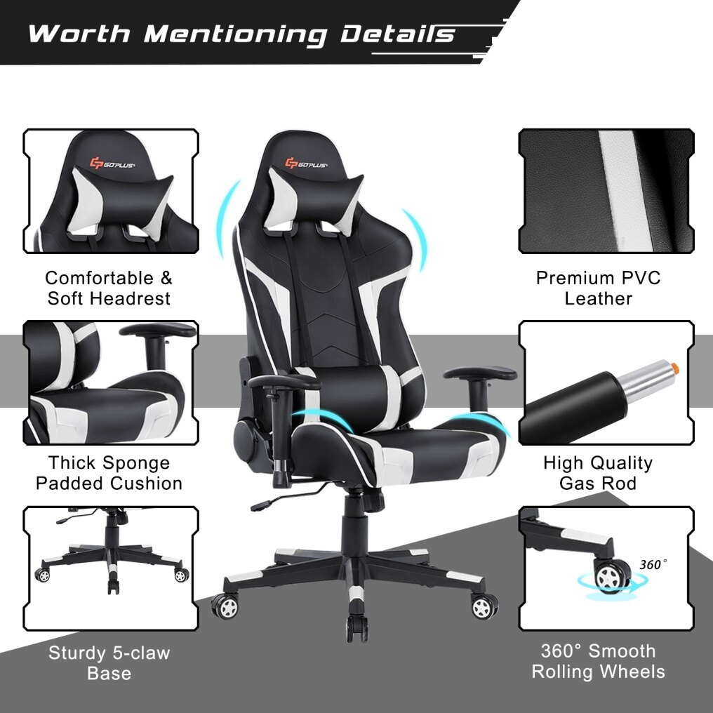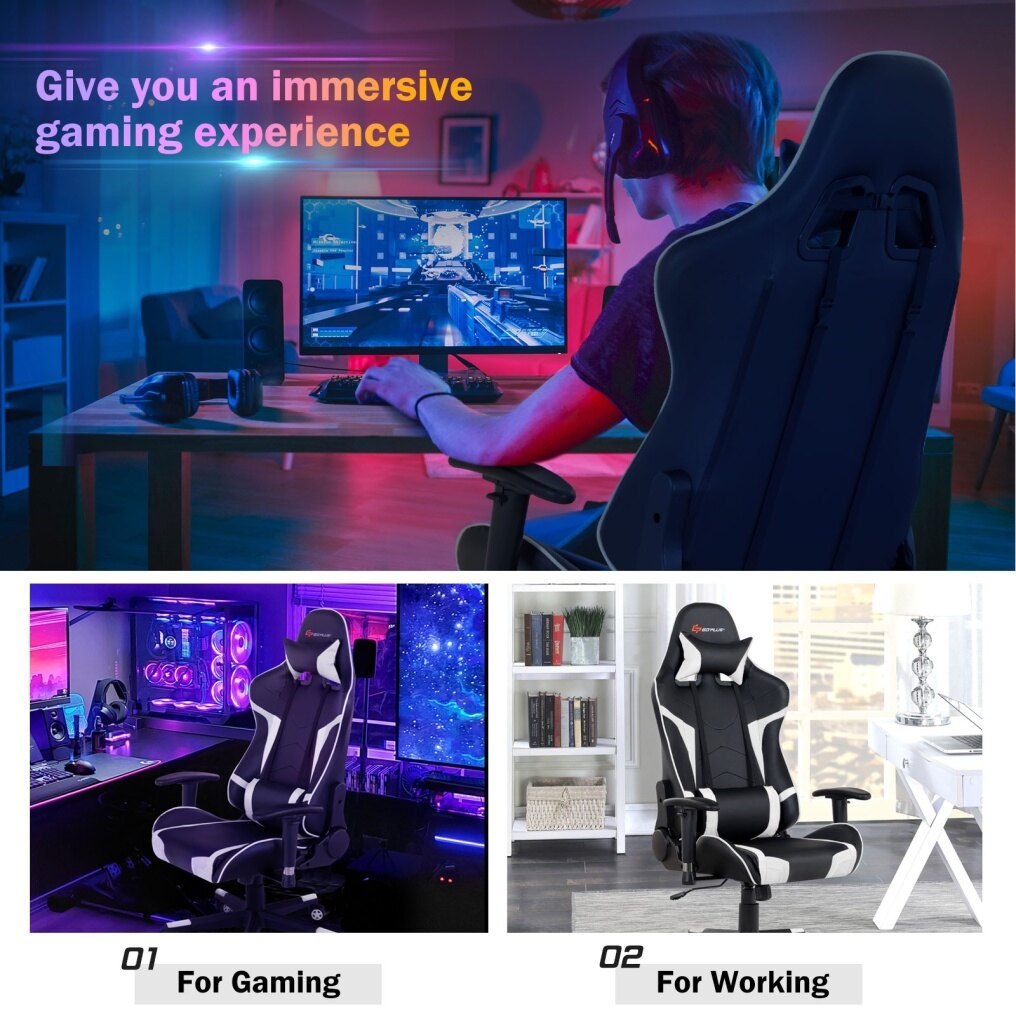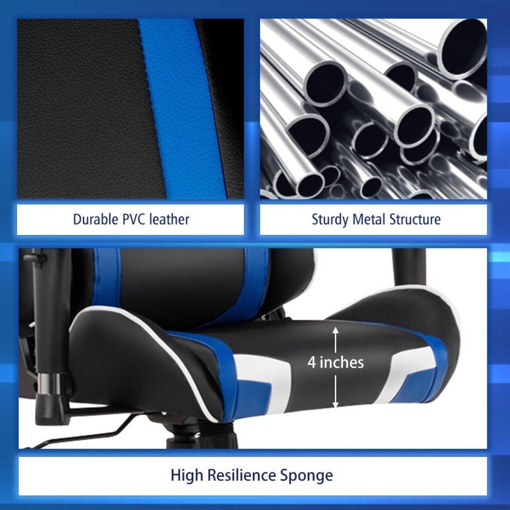 ● High-Density Sponge and Soft Upholstery: Filled with high resilience sponge inside, the gaming chair shall take the softness to the next level. In this way, it leaves both gamers and workers no worry about discomfort caused by sitting for a long time. Additionally, the faux leather upholstery featuring better breathability and durability brings years of enjoyment.