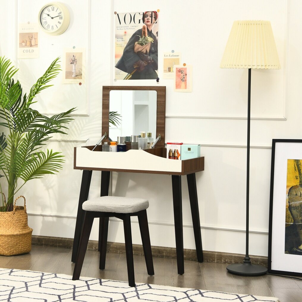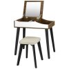 Vanity Table Set with Flip Top Mirror and Padded Stool-Brown