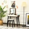 • Sturdy Structure with Wood Material: The dressing table, made of particleboard, has a sturdy structure. Solid wood legs with anti-slip pads and laminate chairs ensure that the set is stable and durable. And tabletop is surrounded by a fence to protect skin-care items from dropping.