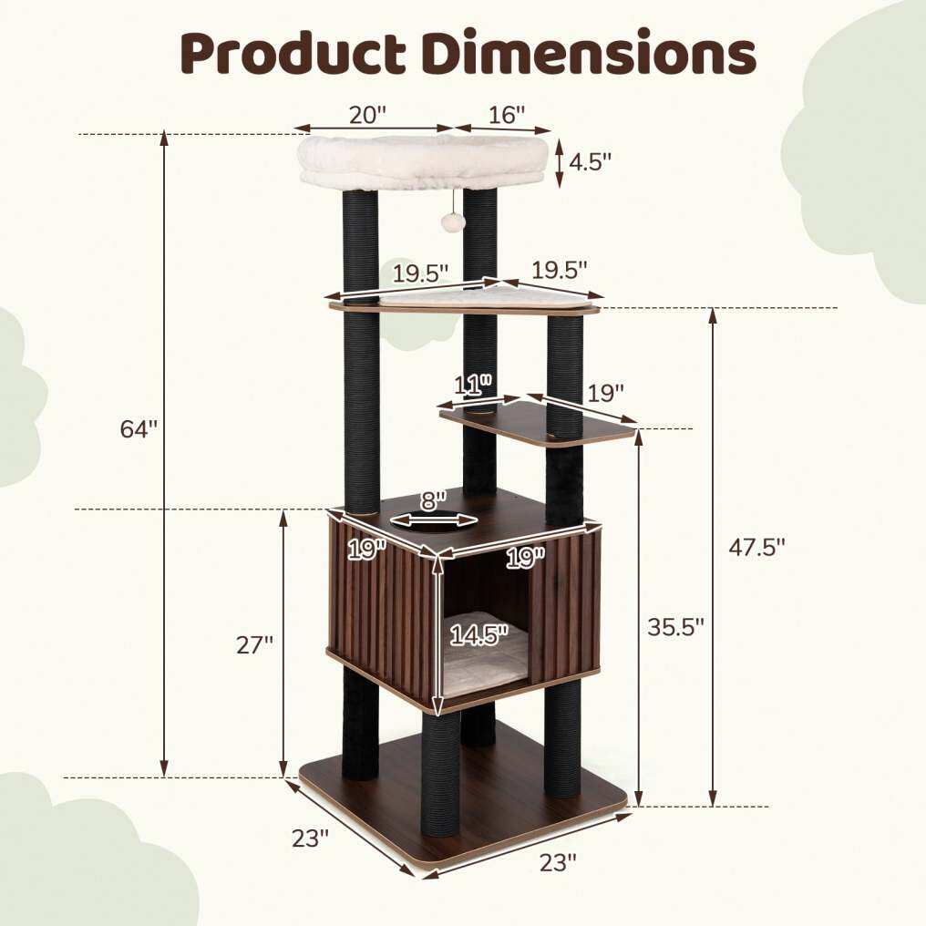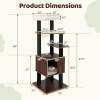 Our multi-level cat tree has 6 levels to encourage climbing and exploring. With a large cat condo, a convenient cat hole and removable soft cushion are included for comfort. Additionally, the scratching posts promote healthy paw care, while the hanging pompom provides endless fun. The wide comfy top perch covered with thickened sponge cushions offers a perfect spot for cats to relax. With 6 levels of climbing and exploring fun, this space-saving cat tree maximizes vertical space while fitting seamlessly into any corner, making it perfect for small apartments.