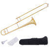 With this unique combination of brass and tubing, the trombone creates one of the most sensitive, focused, warm bodied sounds that build with intensity without distorting tone. The trombone is made of durable brass and coated with beautiful gold lacquer finish, being not only a decor repesenting your taste but also providing years of reliable use. it is suitable for no matter beginners, students, teachers and music lovers.