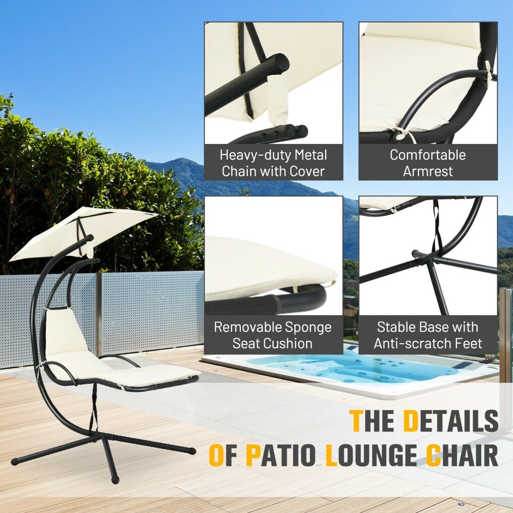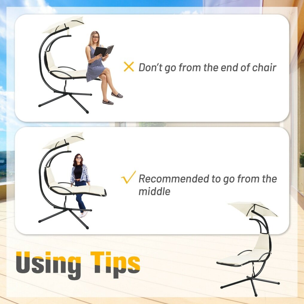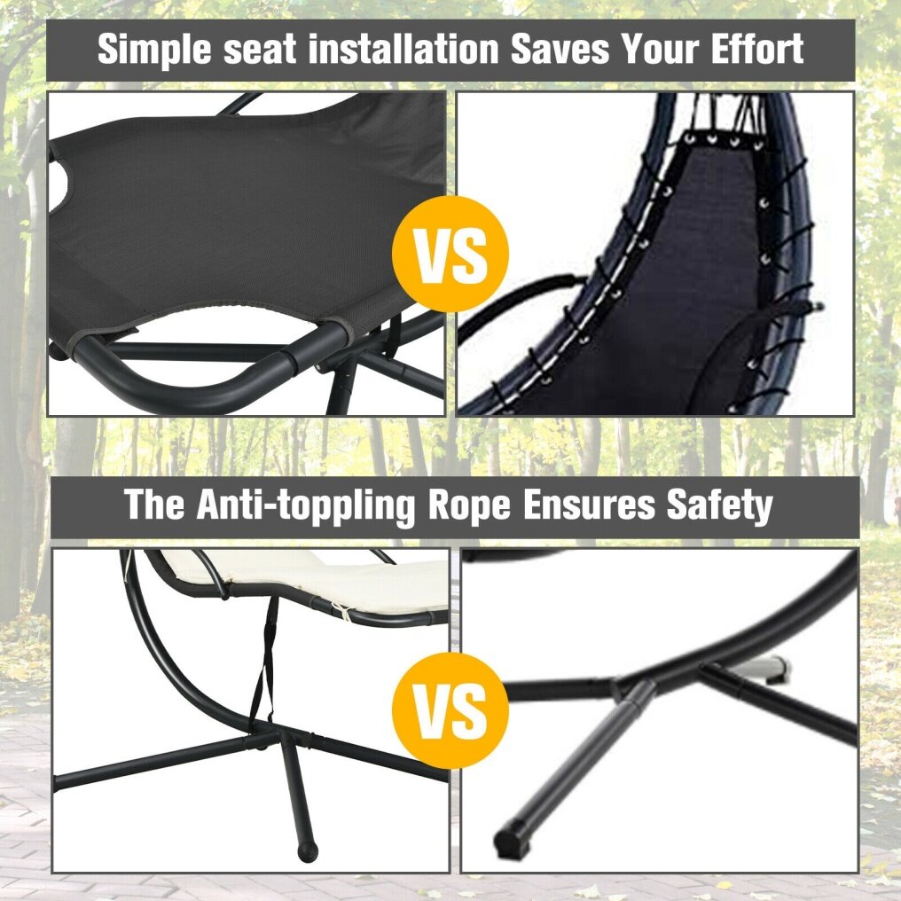 ● Premium Material and Sturdy Frame: Made of a heavy-duty steel frame, this outdoor hanging chaise lounge chair with an X-shaped base ensures overall stability, which can support up to 265 pounds. In addition, the foot mats are designed to prevent the floor from getting scratched.