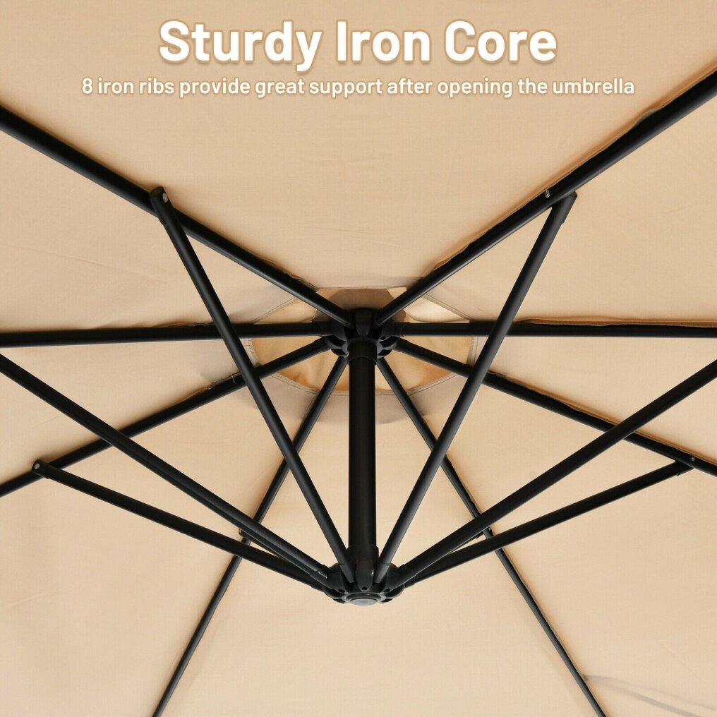 ● Tilt Controls and Crank: This patio offset umbrella has a flexible tilt control mechanism which will facilitate you a lot to adjust the height and choose more angles according to the real weather condition you meet for the most comfortable feel during use. Equipped with a crank, this umbrella allows you to easily open this umbrella for a large shade and close the umbrella.