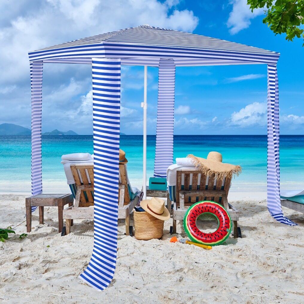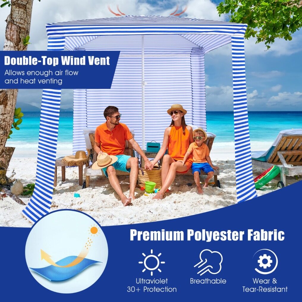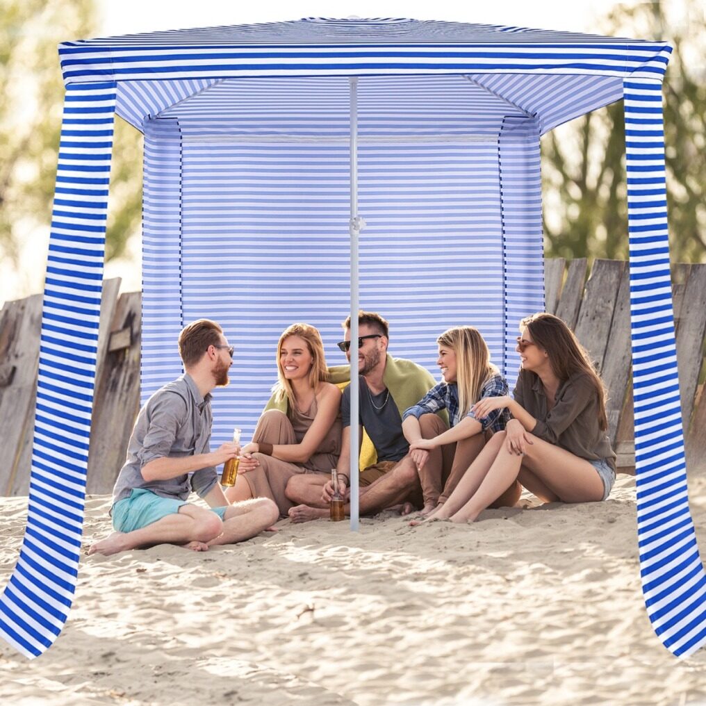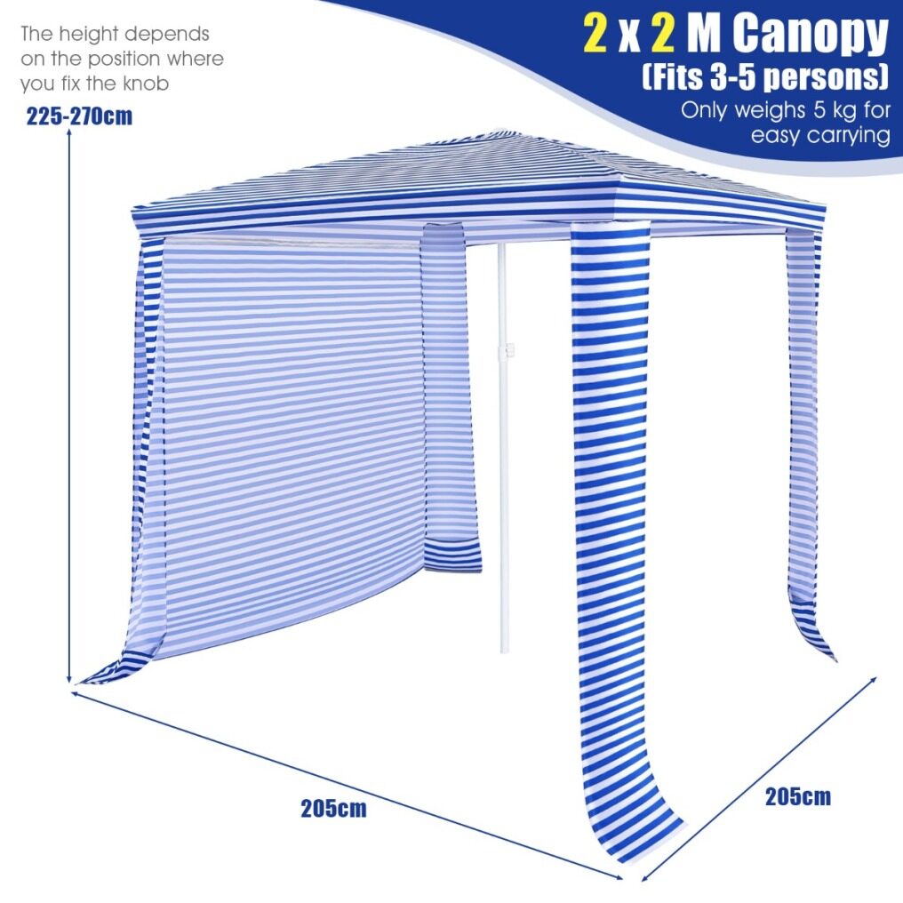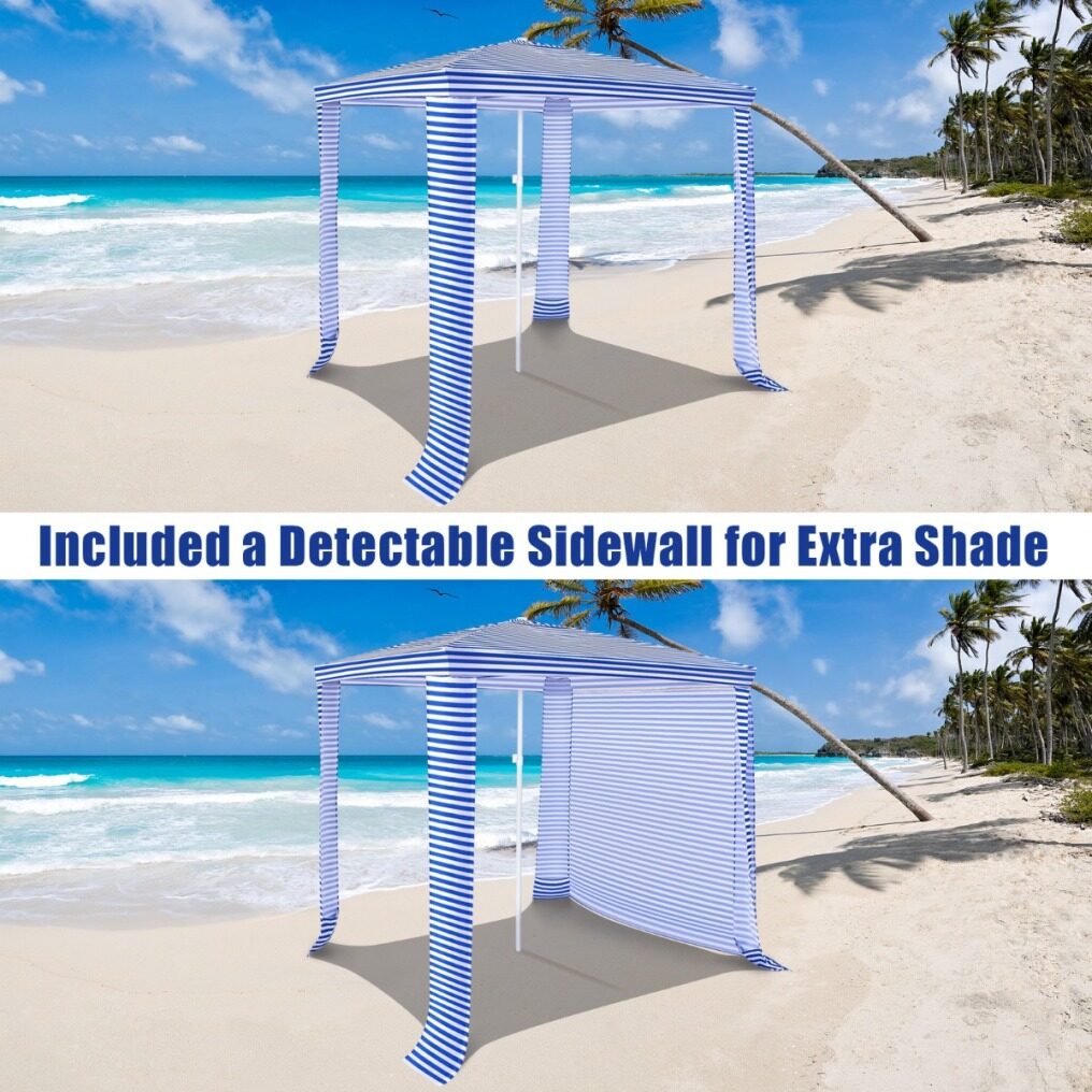 Large Shade & Detachable Sidewall: The beach cabana measures 4 sq meters of shade, providing sufficient rest area for couples, family, or friends to enjoy parties. Moreover, there exists a sidewall that can be detached by zippers, allowing you to enjoy maximum sun protection and extra privacy.