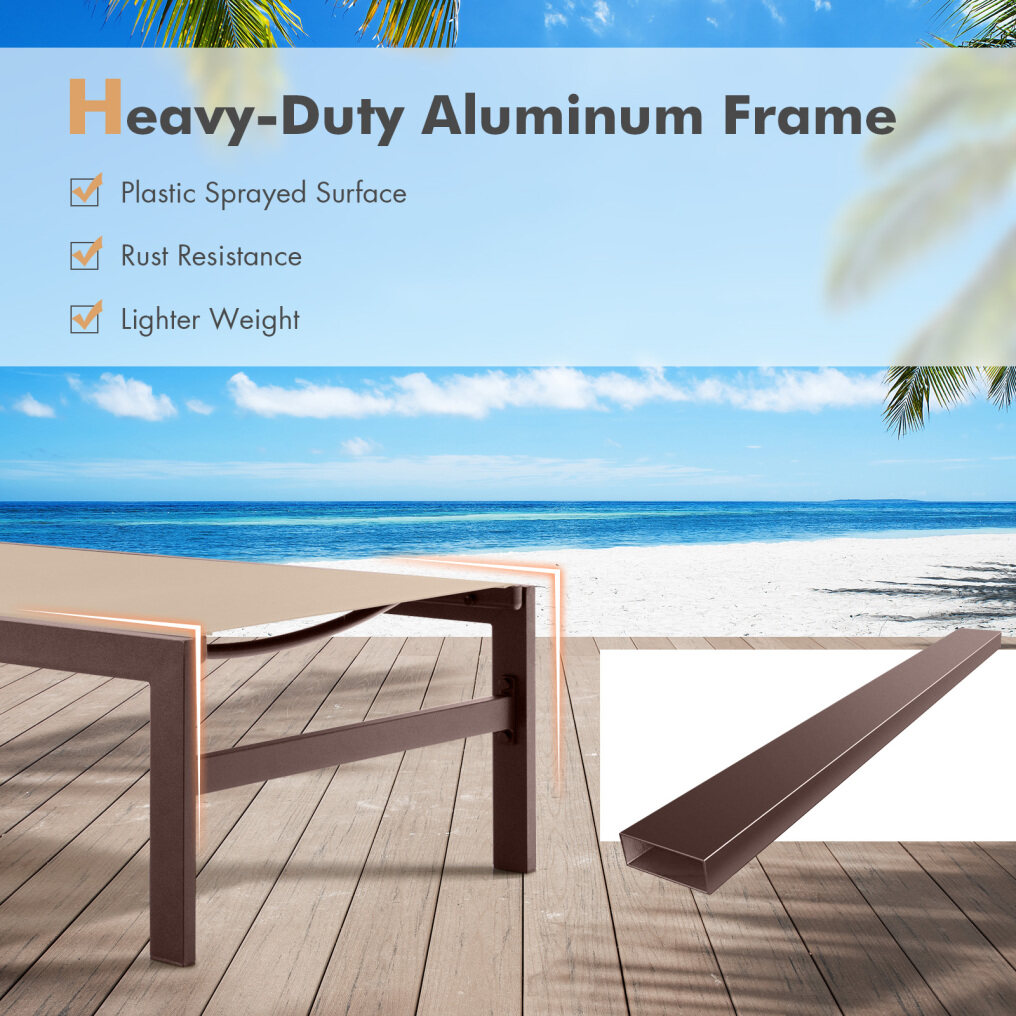 The rustproof aluminum frame ensures durability for outdoor use and the breathable fabric offers ultimate comfort. With a minimalist style, this patio lounge chair will add a touch of elegance to your space no matter where it is placed. What’s more, the high backrest and wide seat provide you with better support. This versatile patio chaise lounge chair will achieve all your leisure needs!