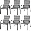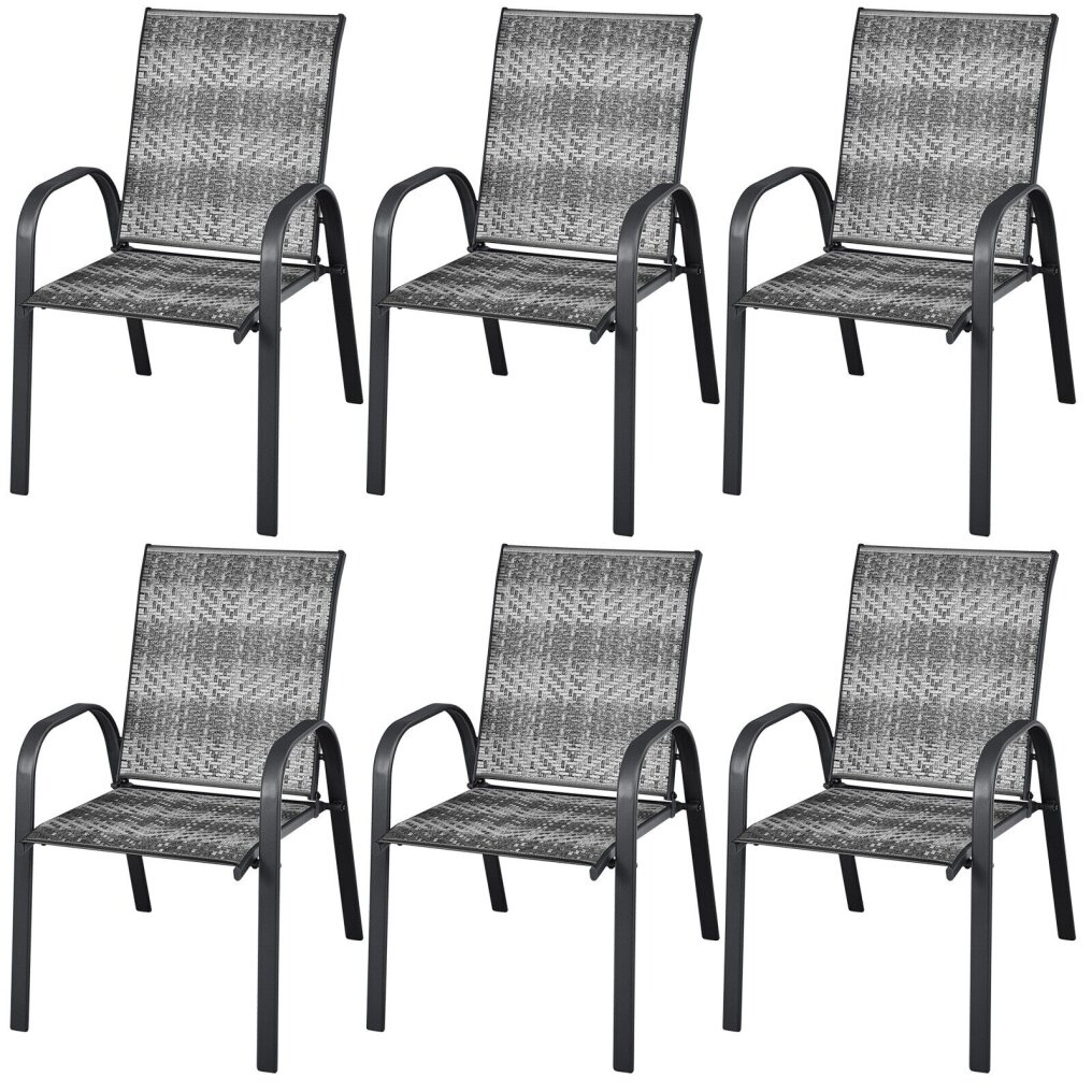 For comfort, these patio chairs are ergonomically designed with curved backrests, cozy armrests and deep seats to provide a comfy sitting experience. Moreover, the all-weather PE wicker and sturdy steel frame make these outdoor armchairs durable and stable for long time use. Therefore, no matter whether you put them on the patio, garden or poolside, these chairs can support you steadily. If you do not need these patio dining chairs, just stack them for easy storage and saving space.