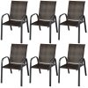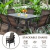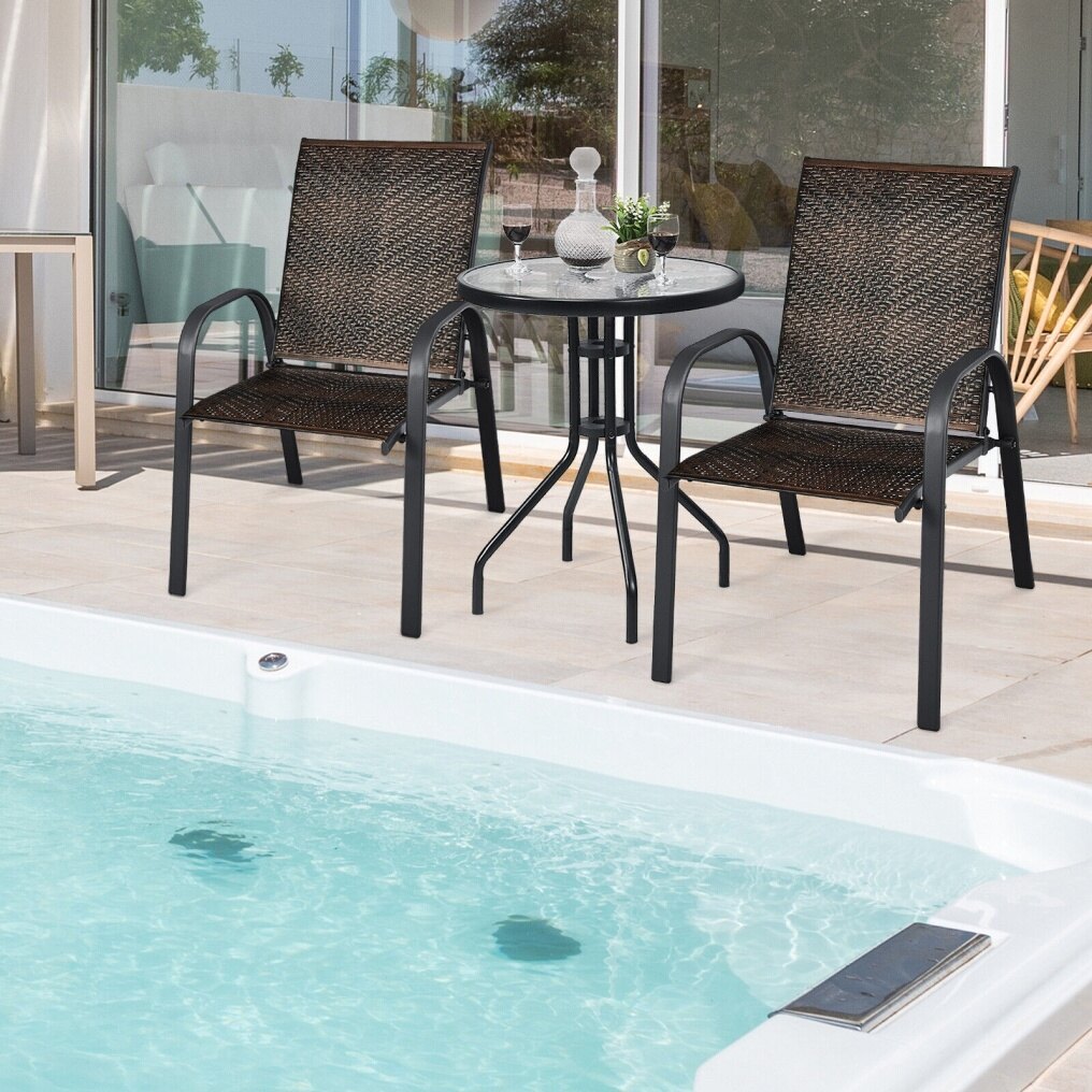 For comfort, these patio chairs are ergonomically designed with curved backrests, cozy armrests and deep seats to provide comfy sitting experience. Moreover, the all-weather PE wicker and sturdy steel frame make these outdoor armchairs durable and stable for long time use. Therefore, no matter whether you put them on the patio, garden or poolside, these chairs can support you steadily. If you do not need these patio dining chairs, just stack them for easy storage and space-saving.