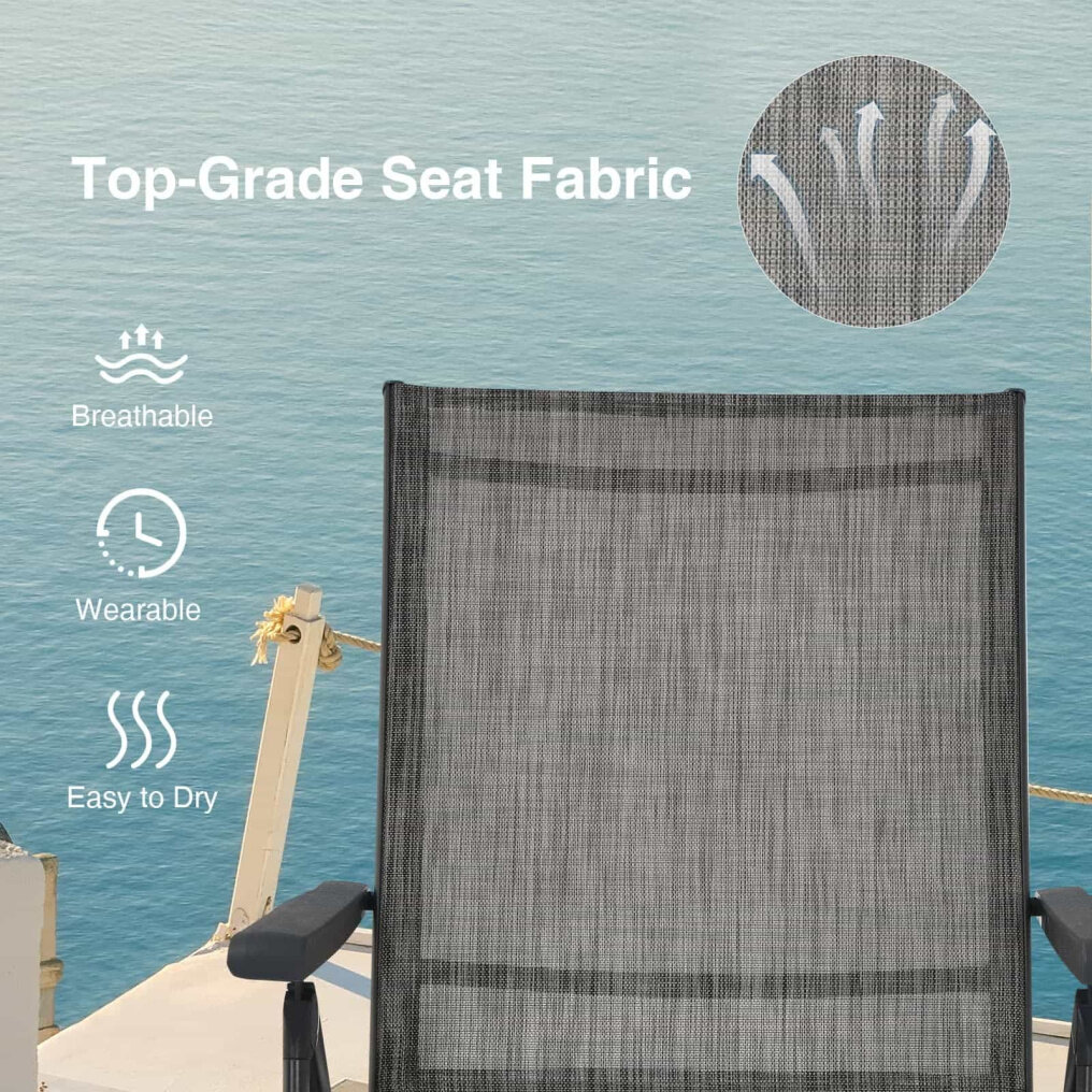 ● Heavy-Duty Steel Frame: Constructed of powder-coated steel pipes, this chaise lounge is quite stable and resistant to rust and deformation. The sturdy triangle structure also adds to higher stability. Moreover, each leg of the chair is covered with non-slip footpads, which protect the ground from scratches.