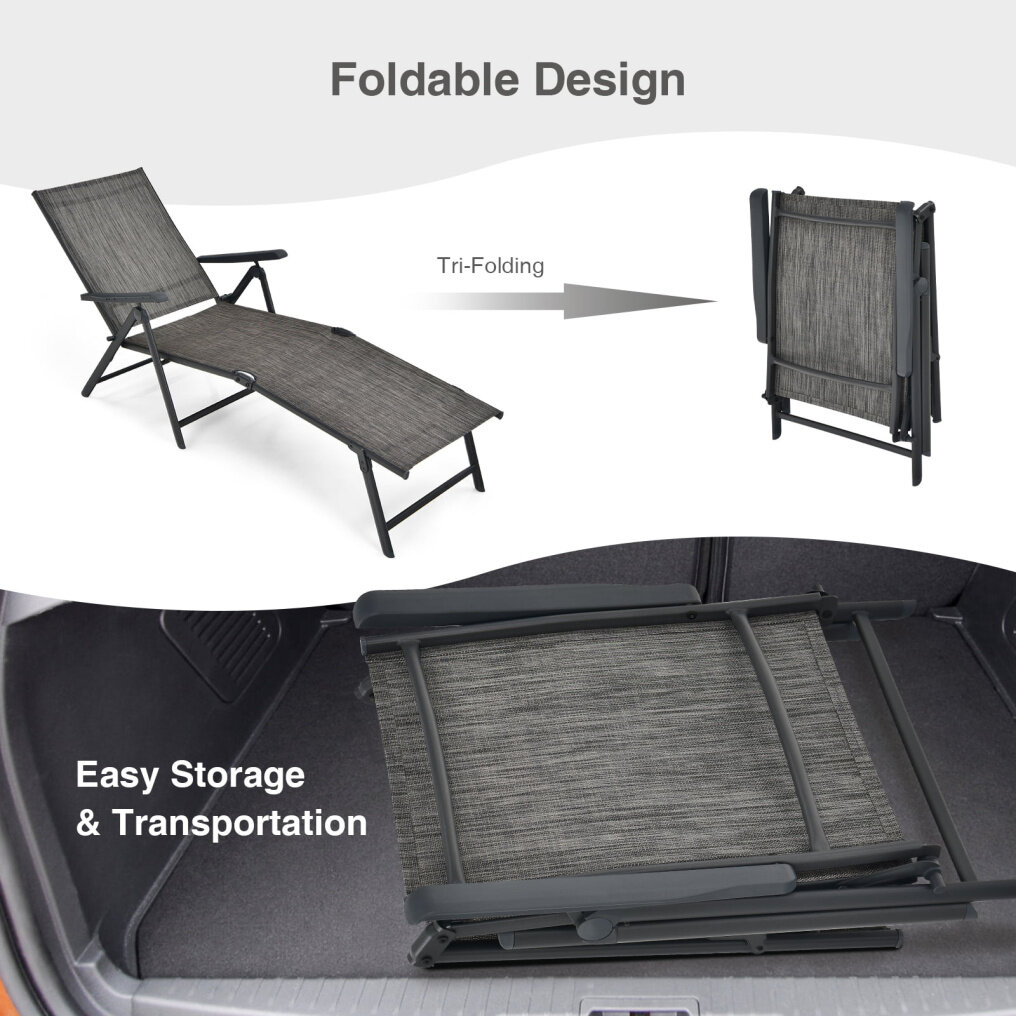 2 Pieces Foldable Chaise Lounge Chair with 2-Position Footrest-Gray