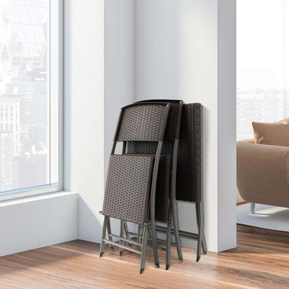 ● More Flexible for More Places: This outdoor folding dining set will not take up too much of your space so that you can use it on the porch, patio, balcony and other places. Furthermore, the sturdy X-shaped structure and anti-scratch foot pads make this patio bistro set more stable for security.